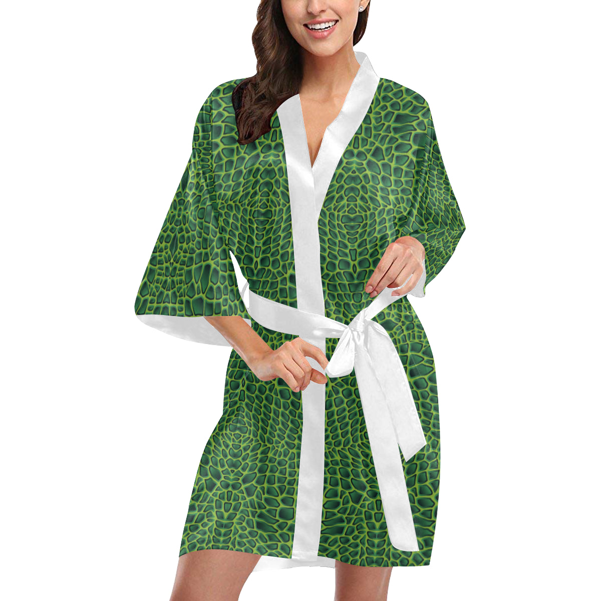 Crocodile Skin Printed Women's Short Kimono Robe is a uniqued design and limited item. It made to order, hand printed, and sewn with love in our factory.