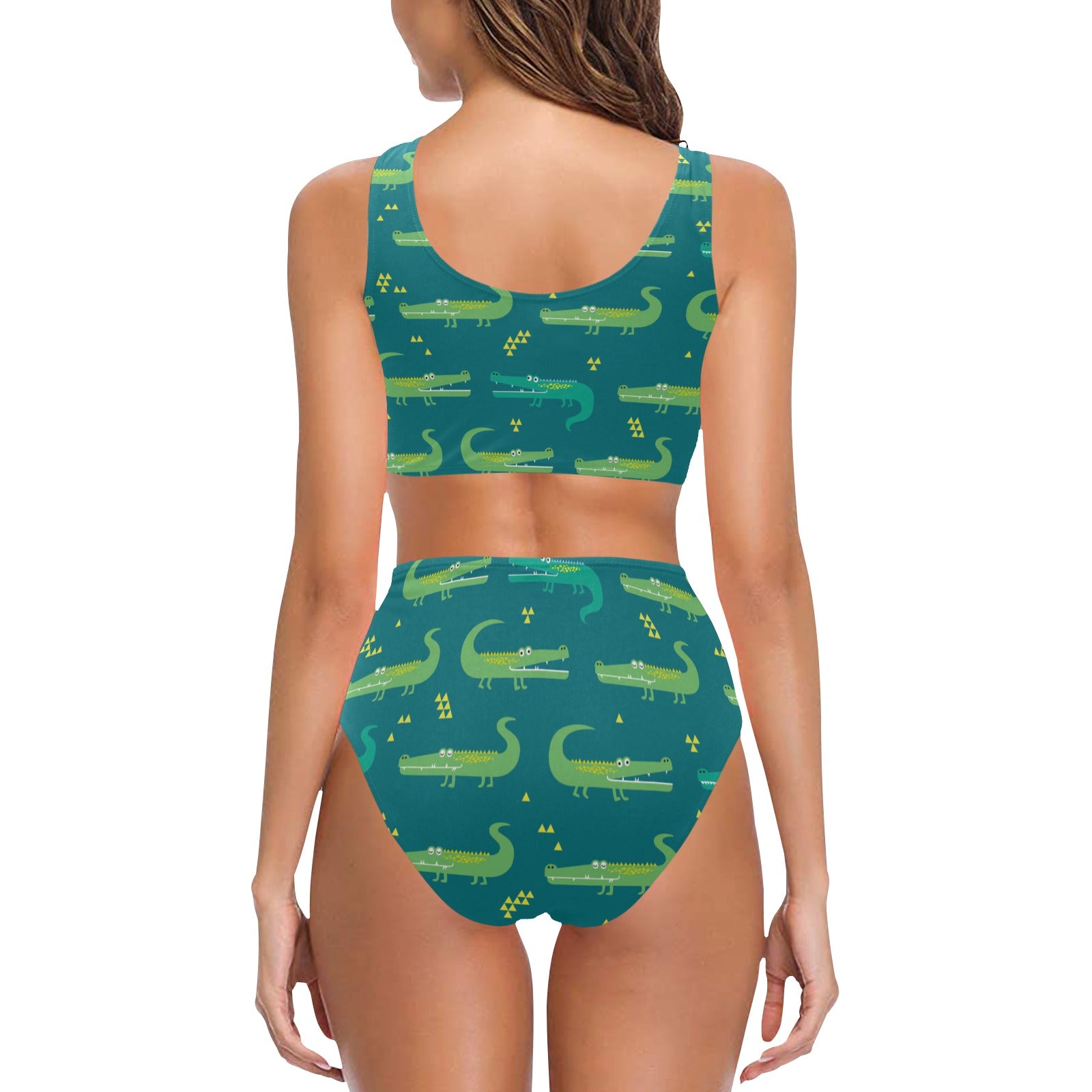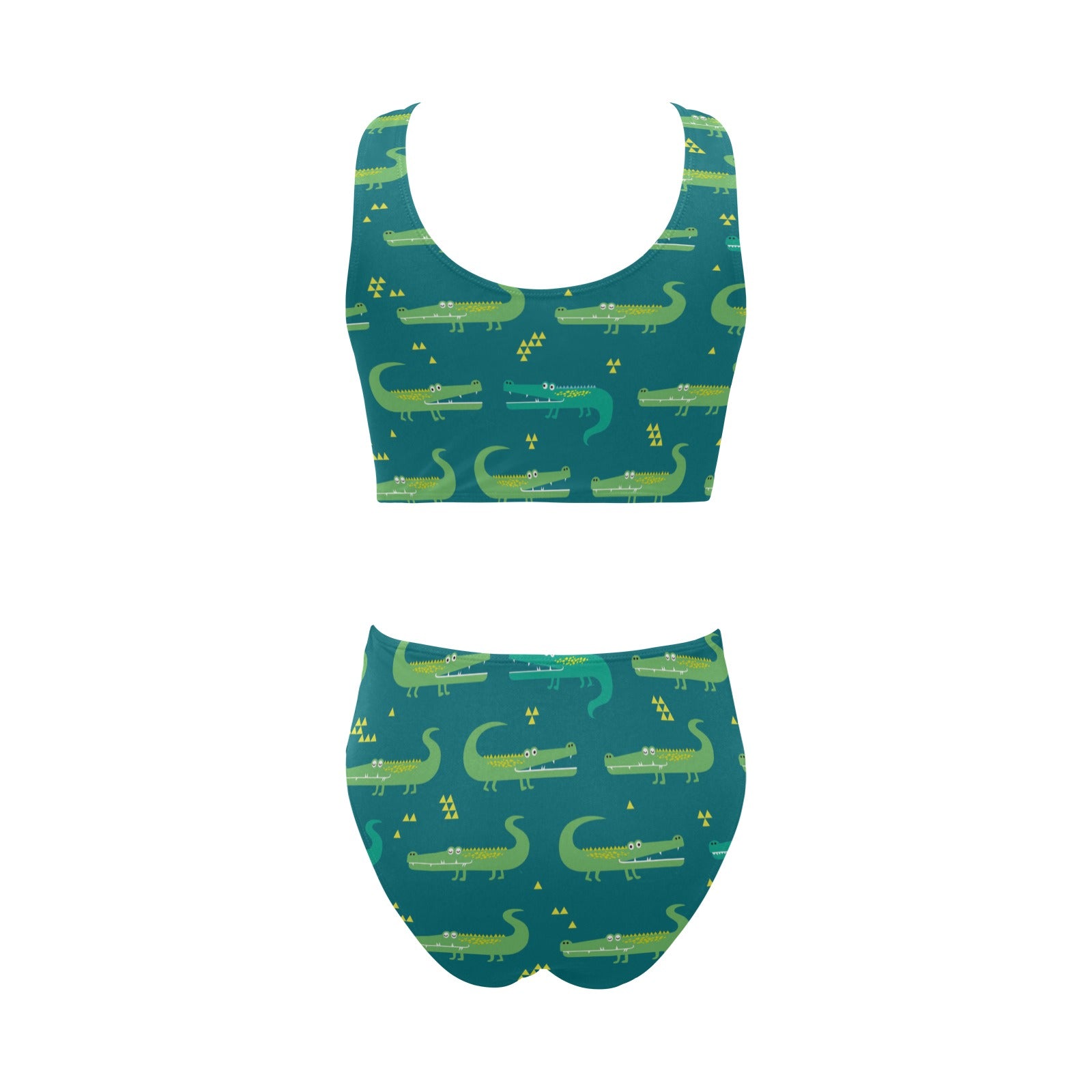 Crocodile pattern Chest Bowknot High Waisted Bikini Swimsuit