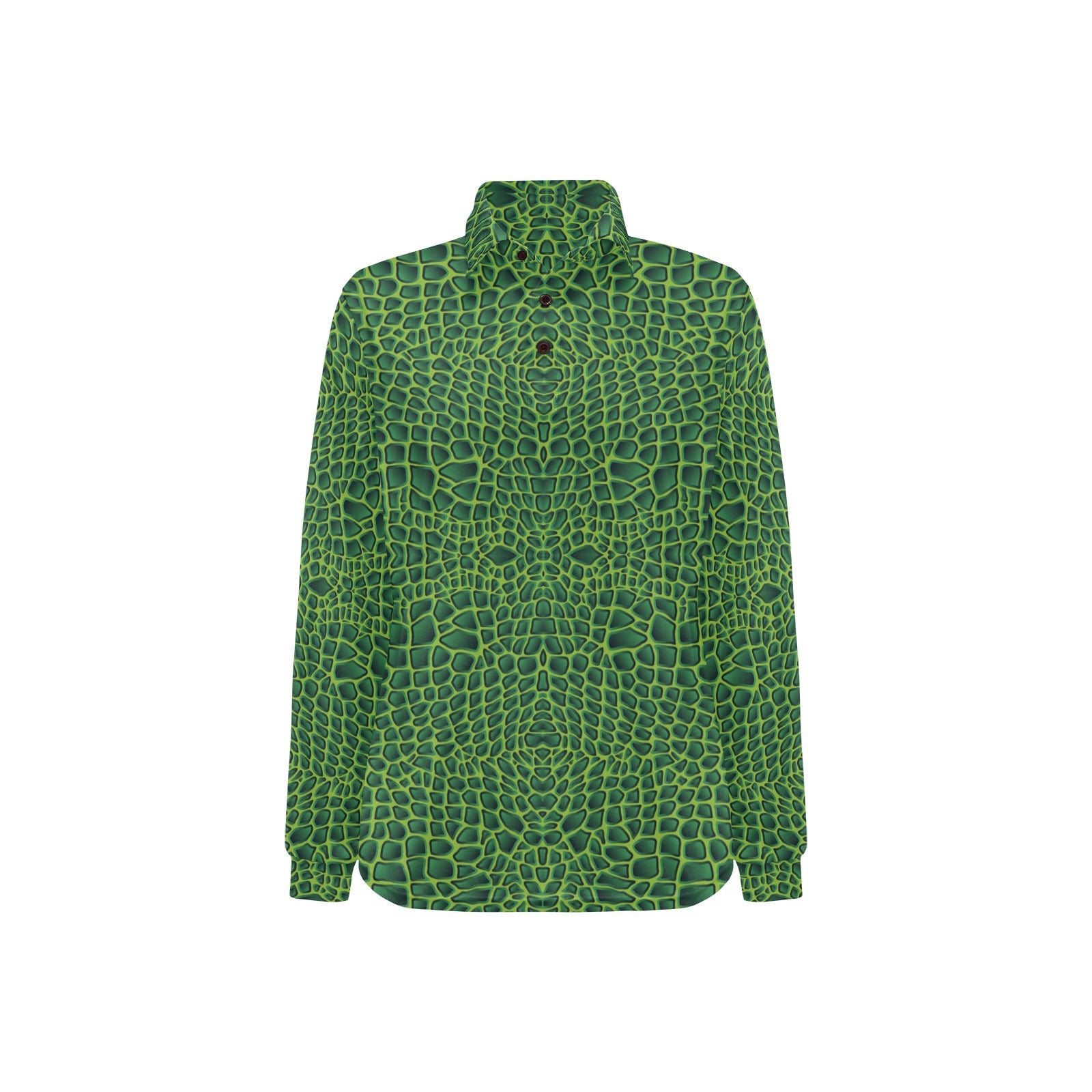 Crocodile Skin Printed Women's Long Sleeve Polo Shirt