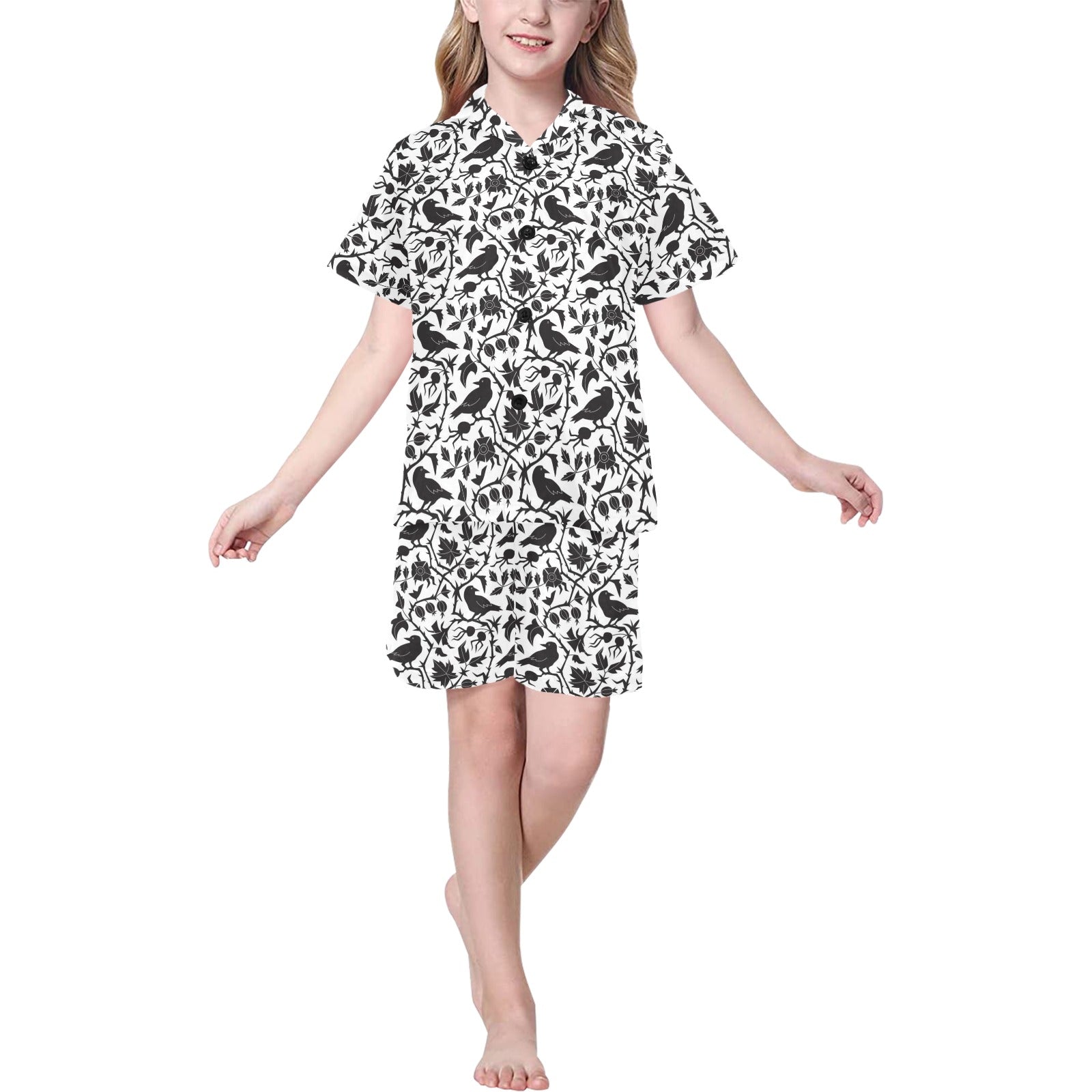 Crow dark floral pattern Kids' Boys' Girls' V-Neck Short Pajama Set