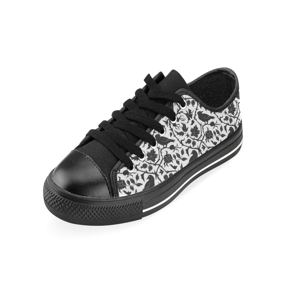 Crow dark floral pattern Men's Low Top Canvas Shoes Black