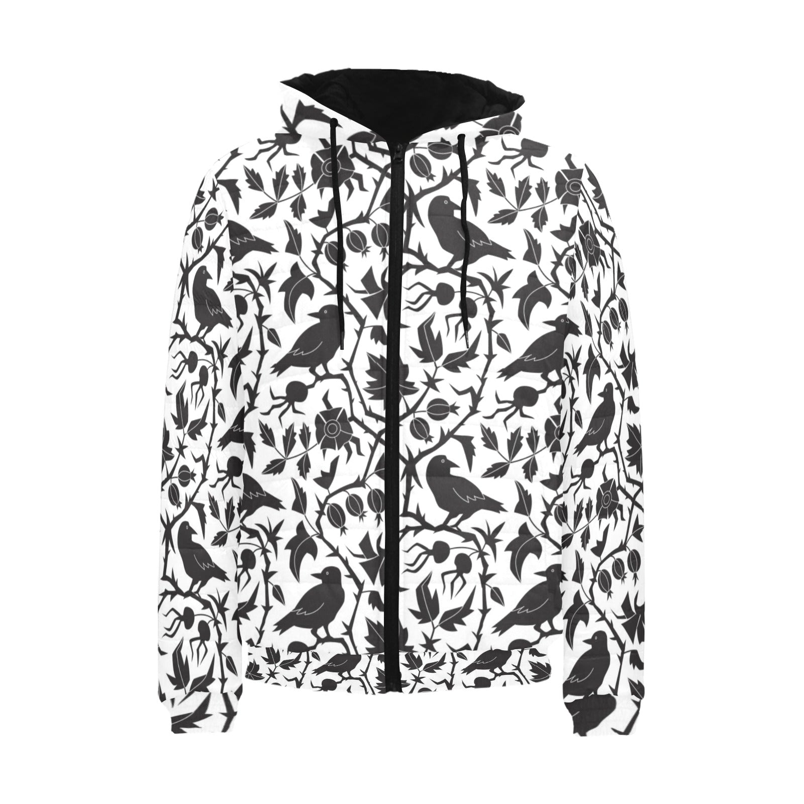 Crow dark floral pattern Men's Padded Hooded Jacket