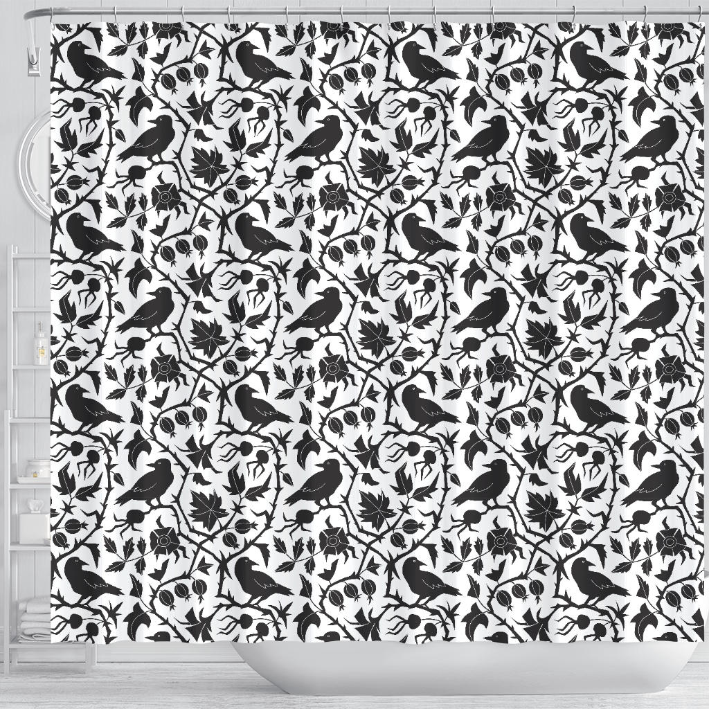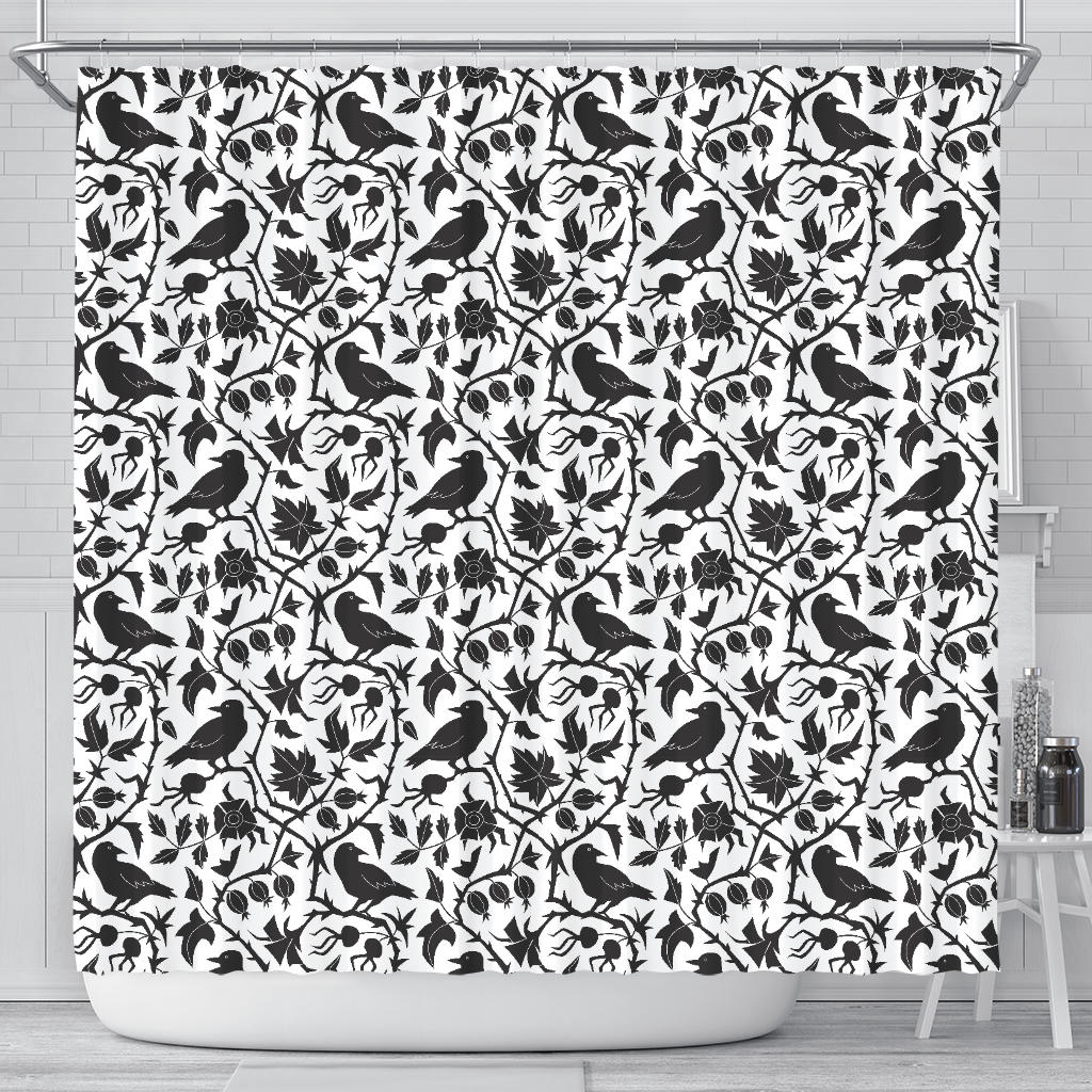 Crow Dark Floral Pattern Shower Curtain Fulfilled In US
