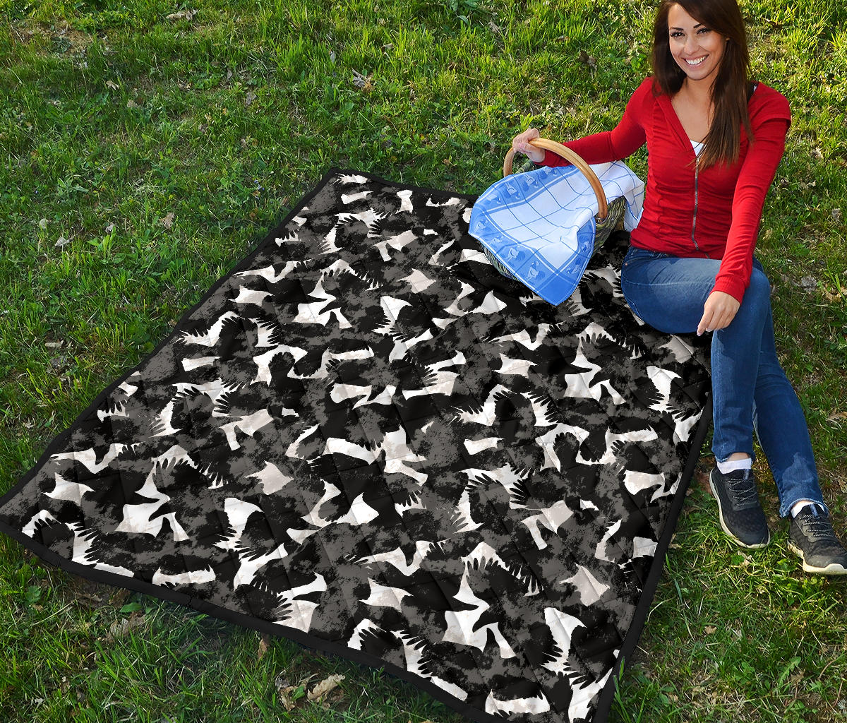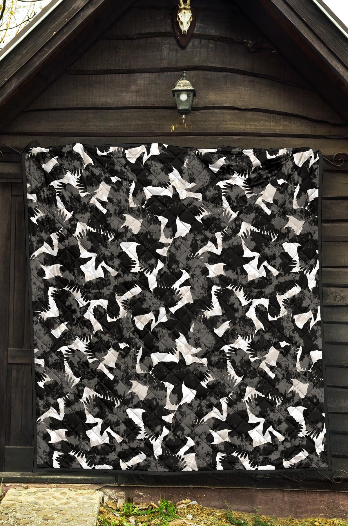Crow Illustration Pattern Premium Quilt is a uniqued design and limited item. It made to order, hand printed, and sewn with love in our factory.