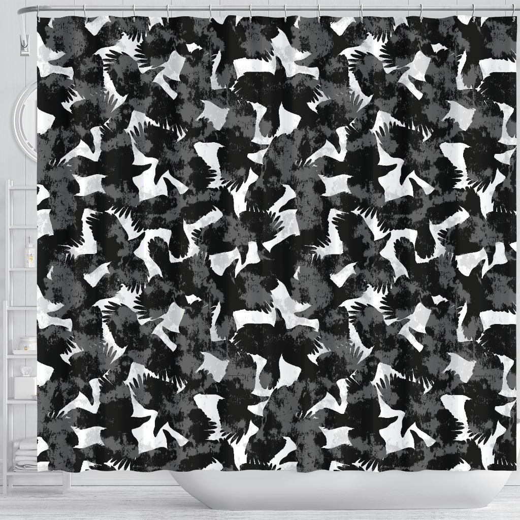 Crow Illustration Pattern Shower Curtain Fulfilled In US