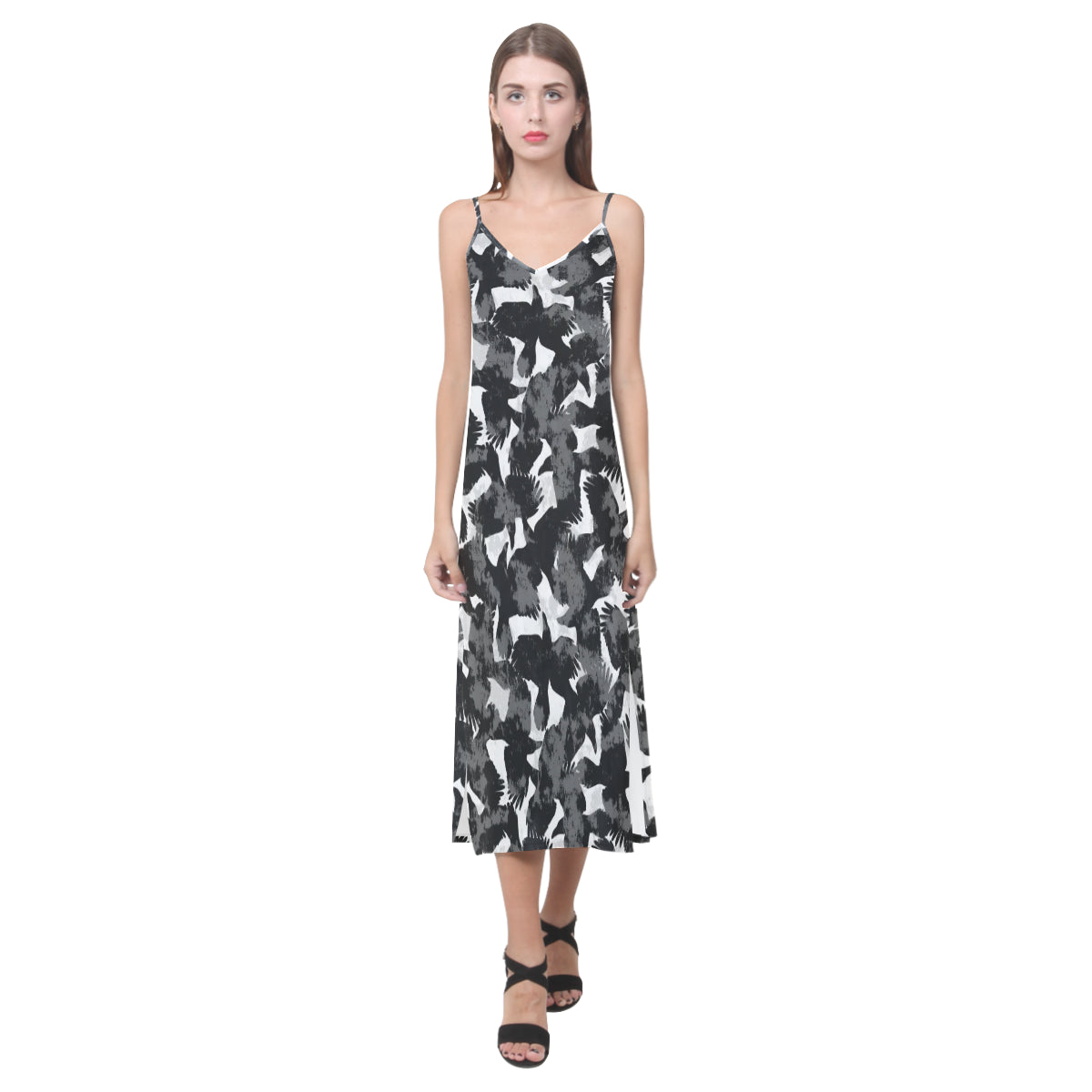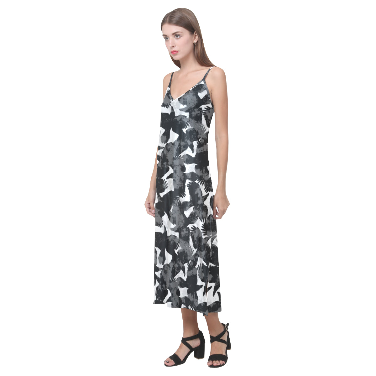 Crow illustration pattern V-Neck Open Fork Long Dress is a uniqued design and limited item. It made to order, hand printed, and sewn with love in our factory.