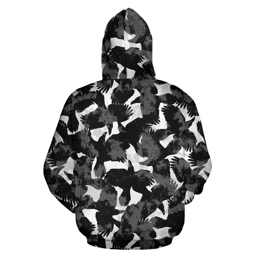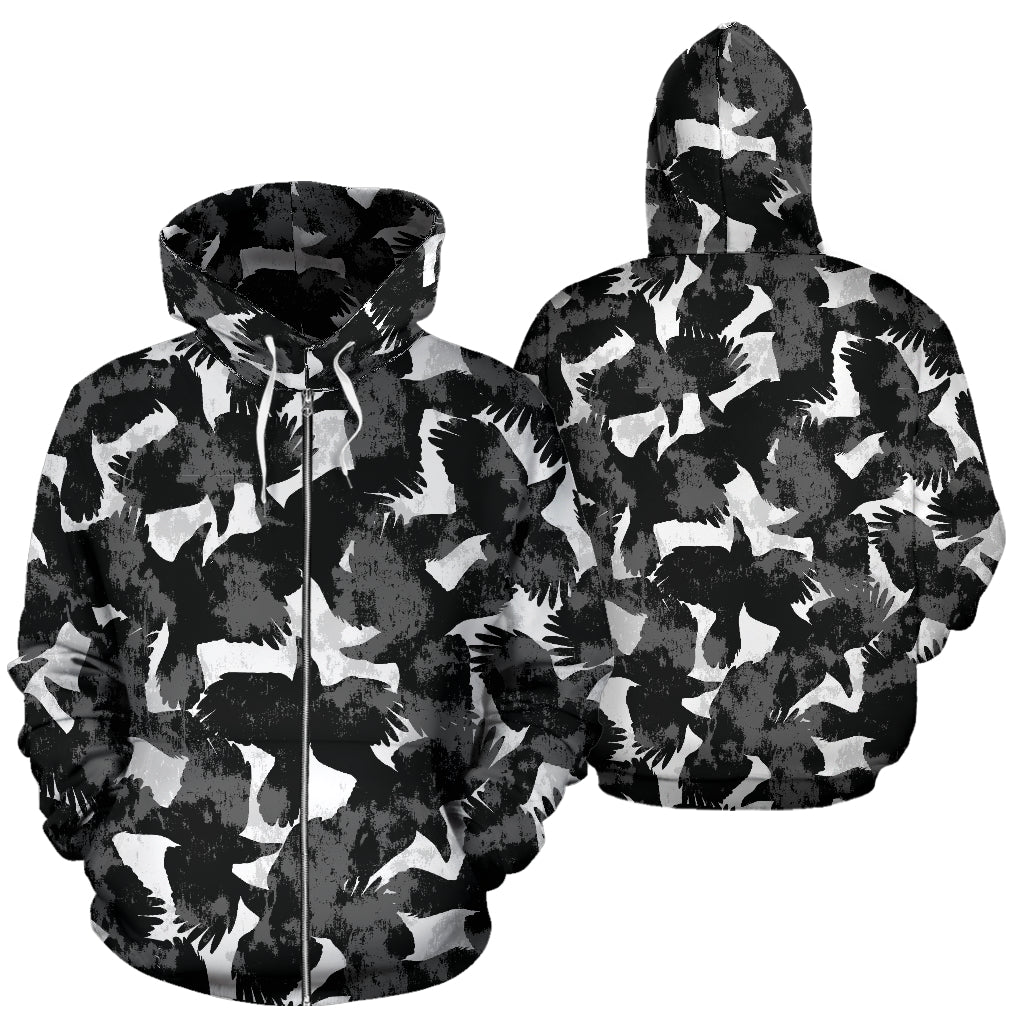 Crow Illustration Pattern Zip Up Hoodie
