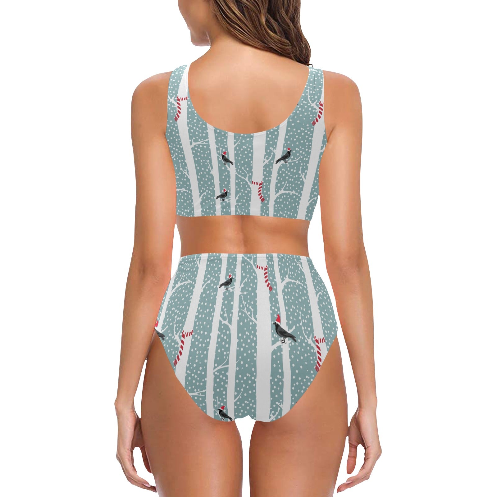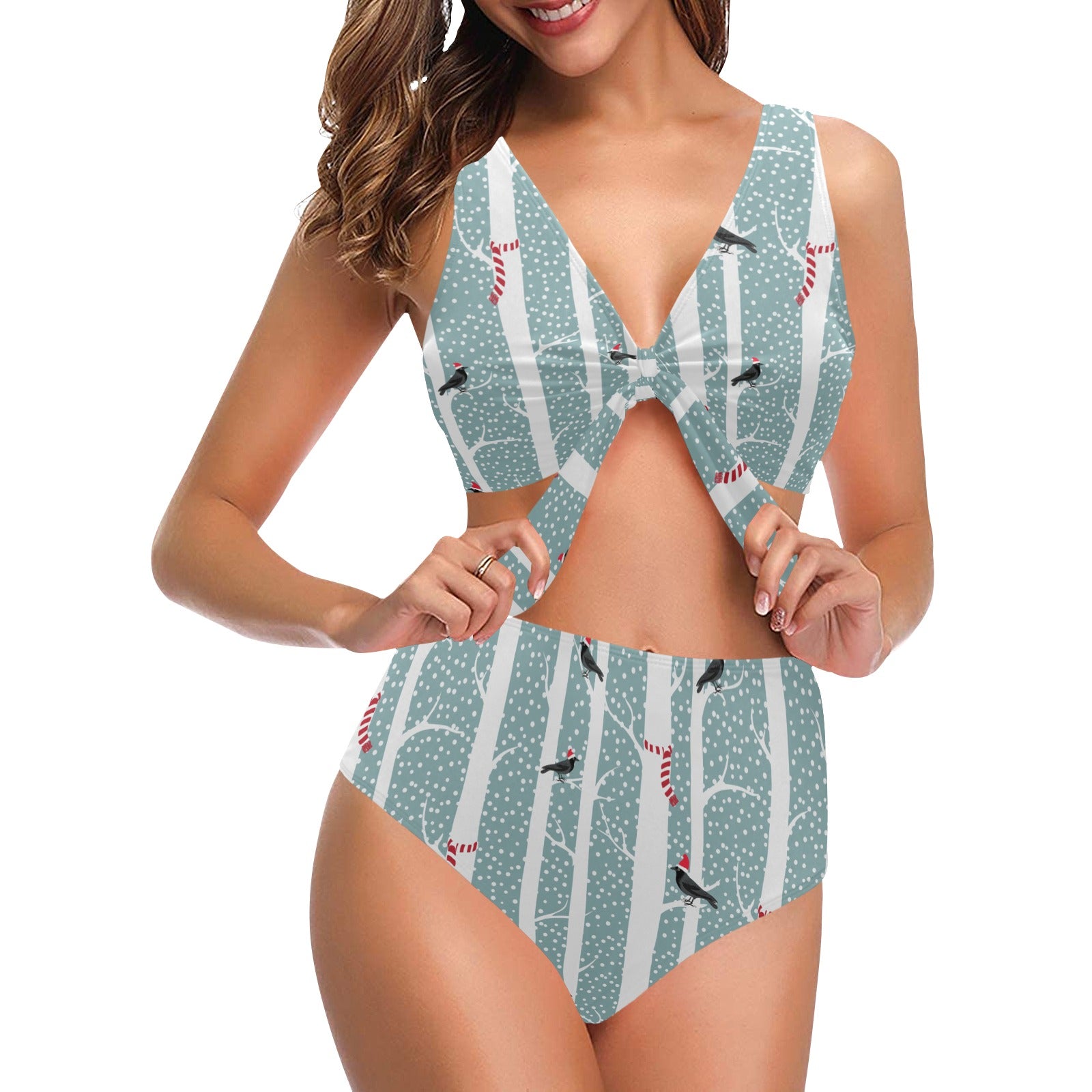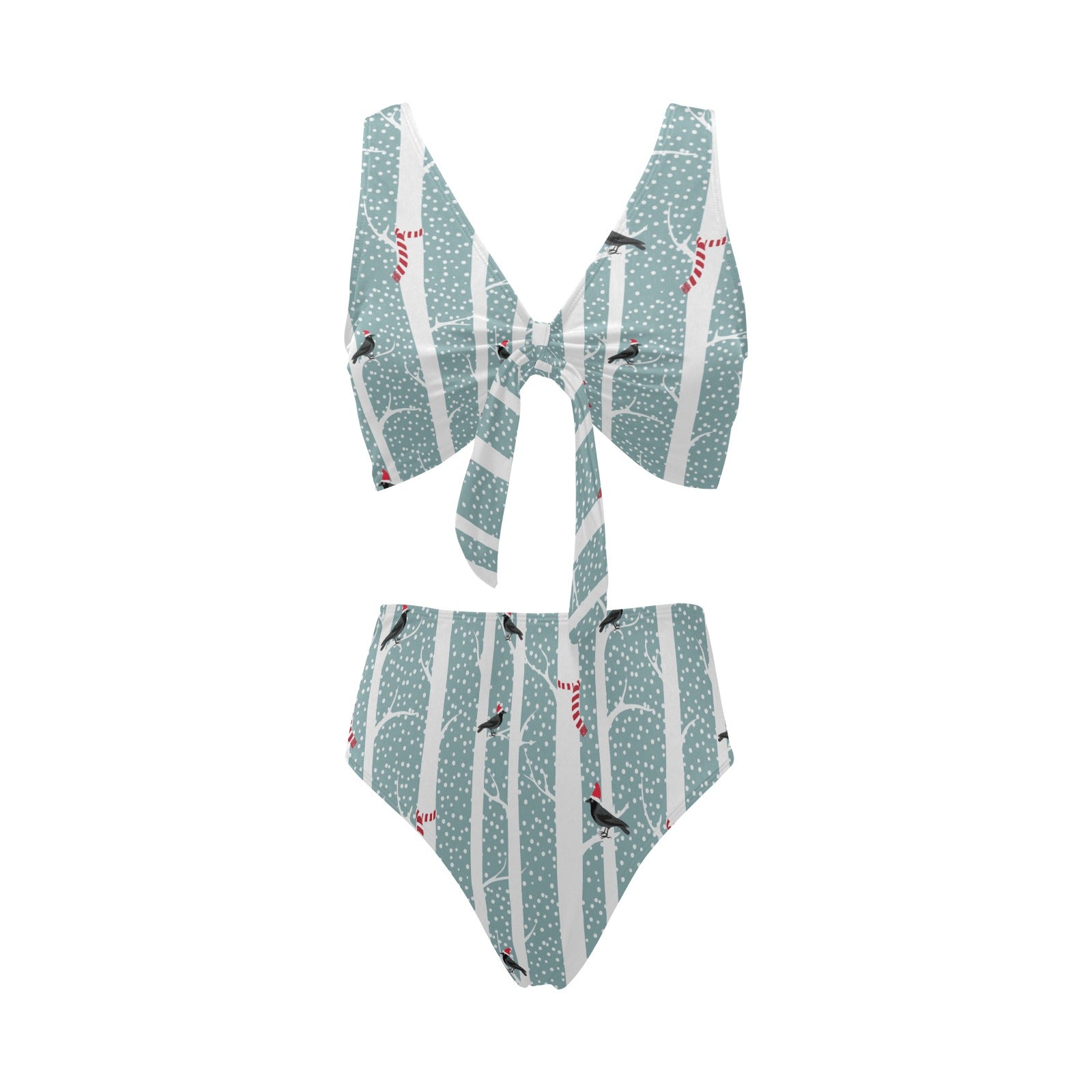 Crows christmas hat scarf Chest Bowknot High Waisted Bikini Swimsuit
