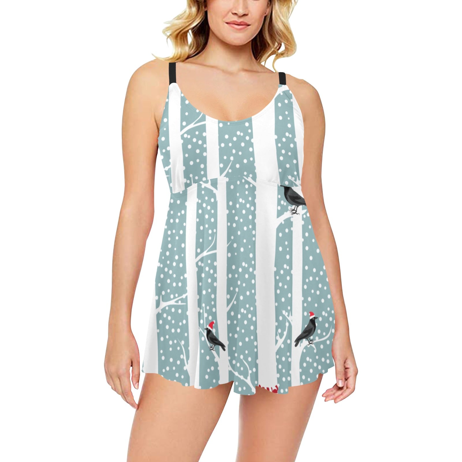 Crows christmas hat scarf Chest Sexy Pleated Two Piece Swim Dress
