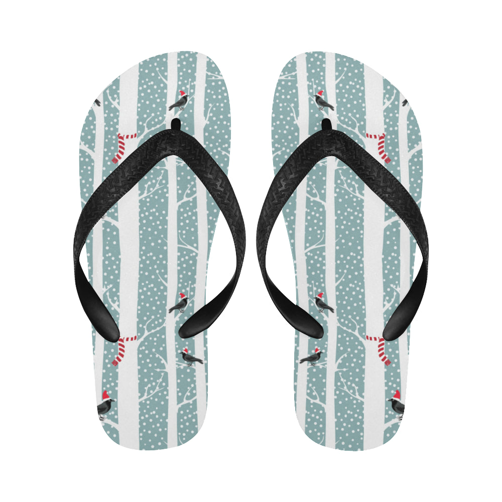 Crows christmas hat scarf Unisex Flip Flops is a uniqued design and limited item. It made to order, hand printed, and sewn with love in our factory.