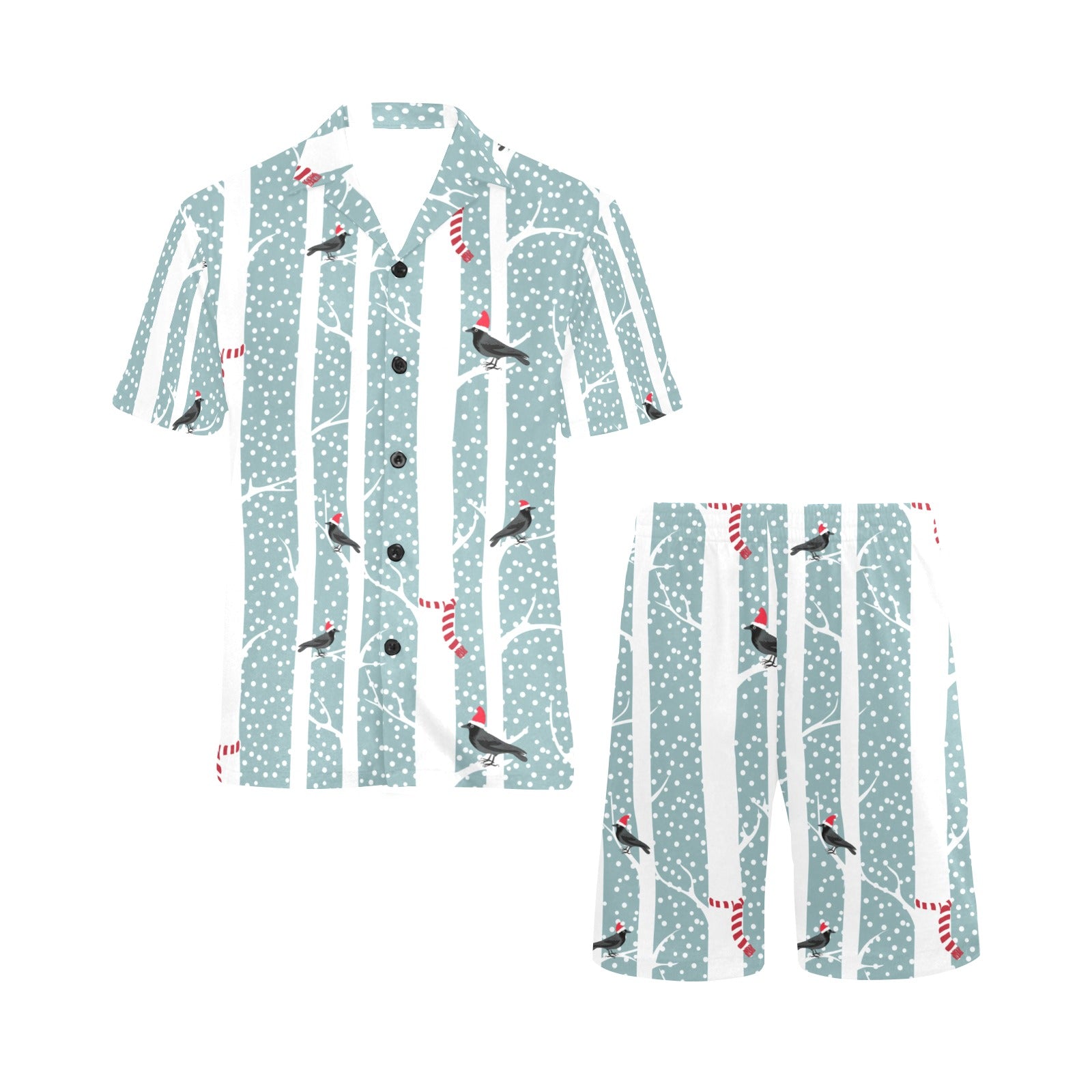 Crows christmas hat scarf Men's V-Neck Short Pajama Set