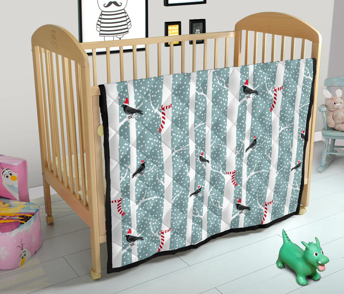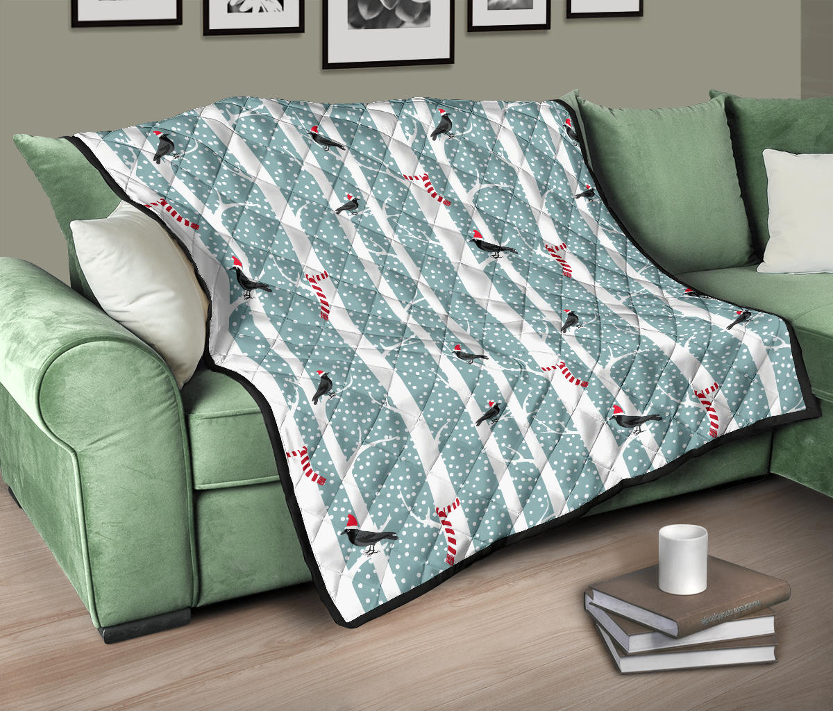Crows Christmas Hat Scarf Premium Quilt is a uniqued design and limited item. It made to order, hand printed, and sewn with love in our factory.
