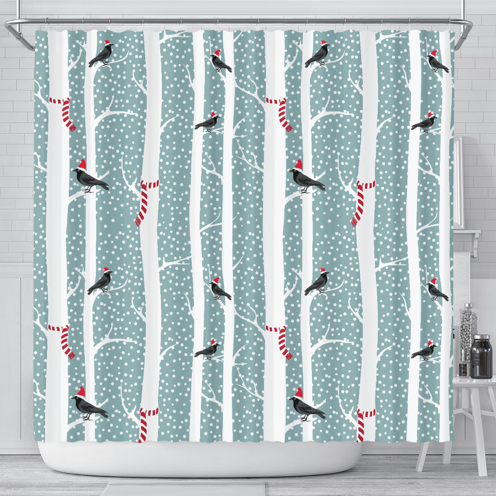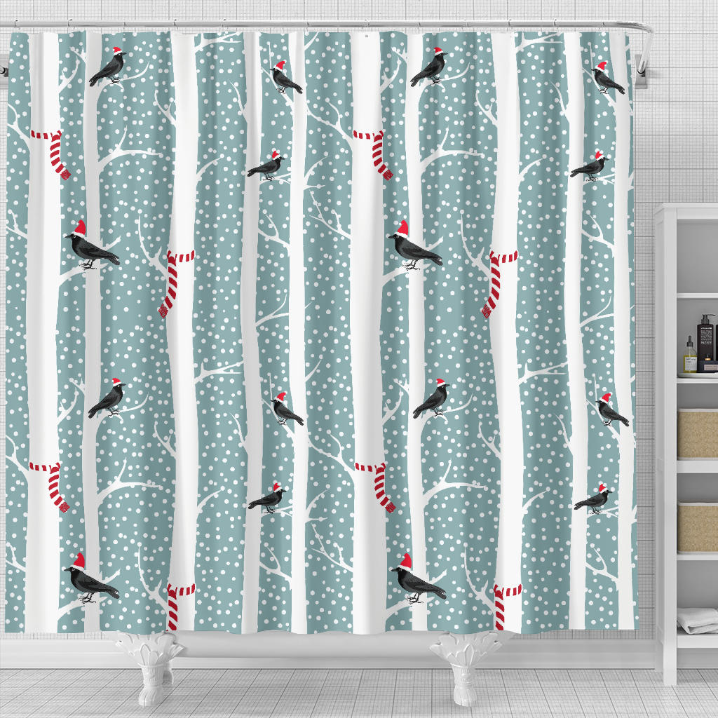 Crows Christmas Hat Scarf Shower Curtain Fulfilled In US