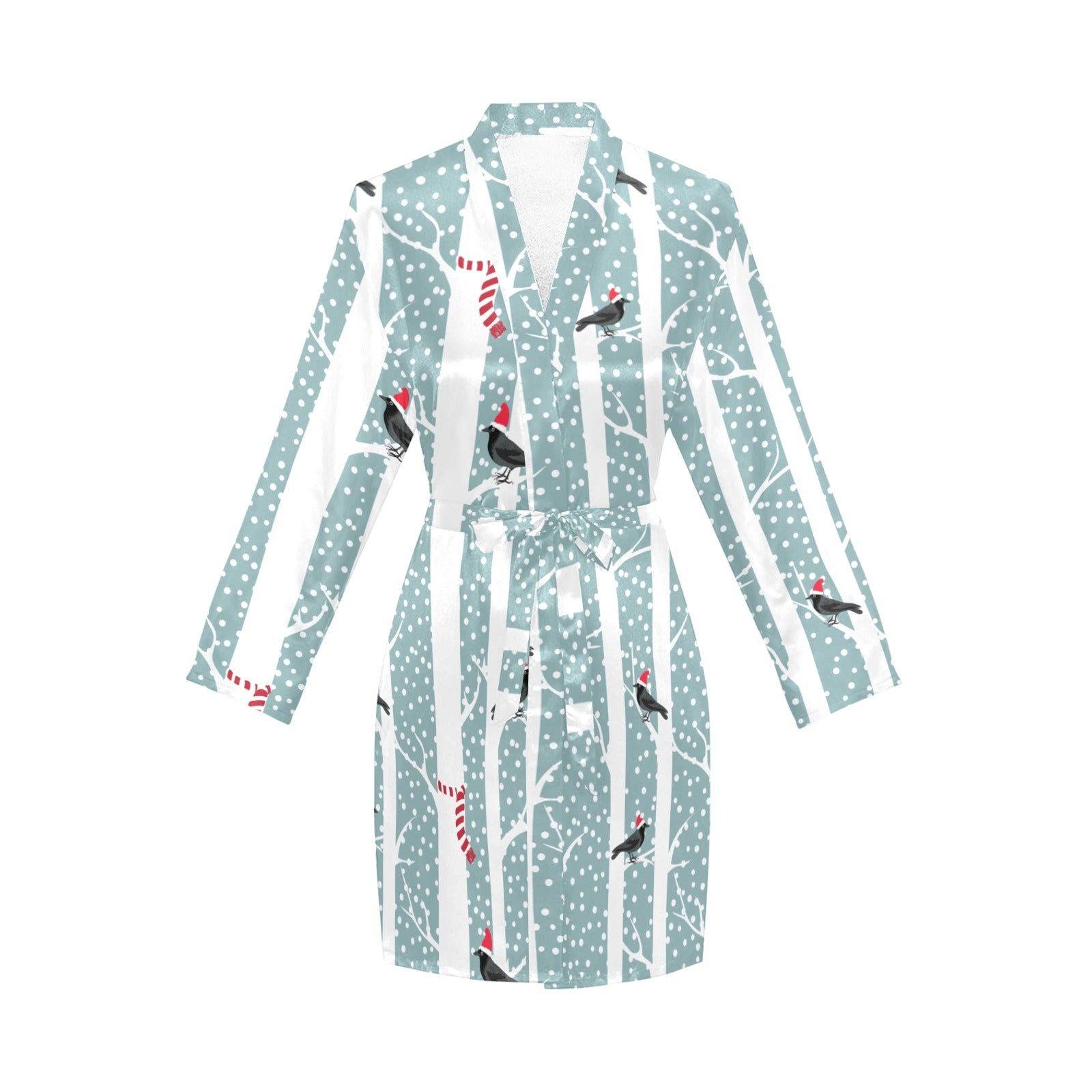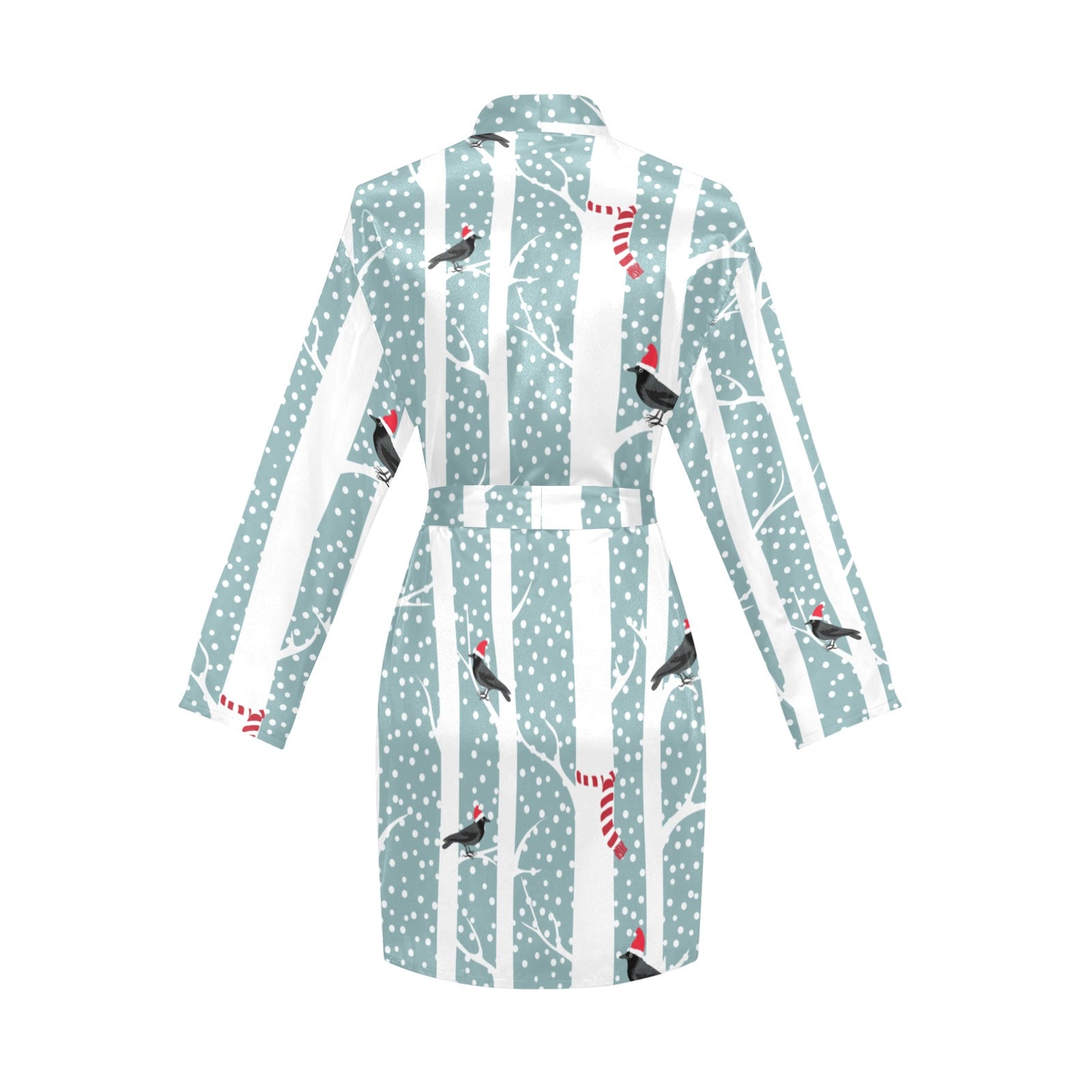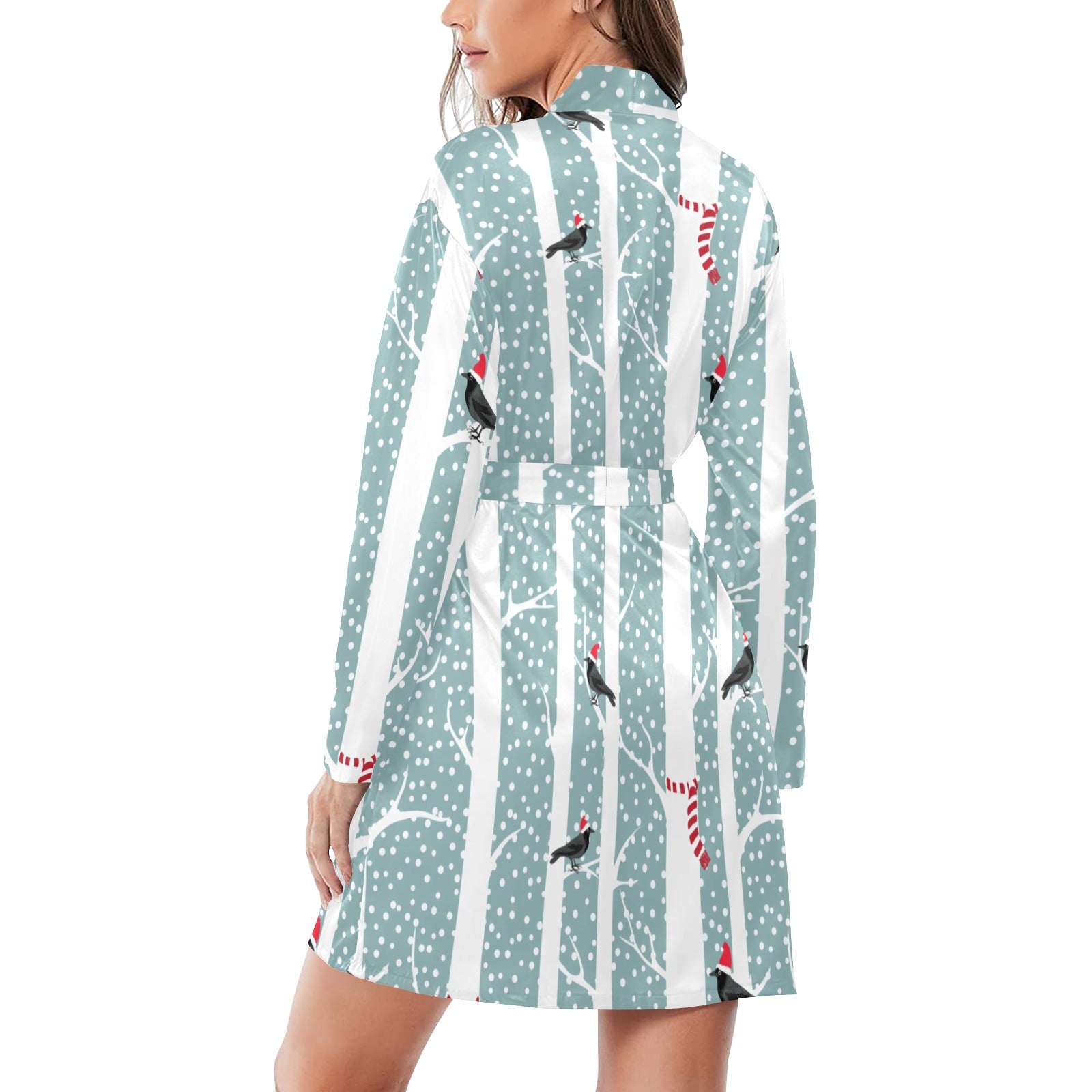 Crows christmas hat scarf Women's Long Sleeve Belted Night Robe