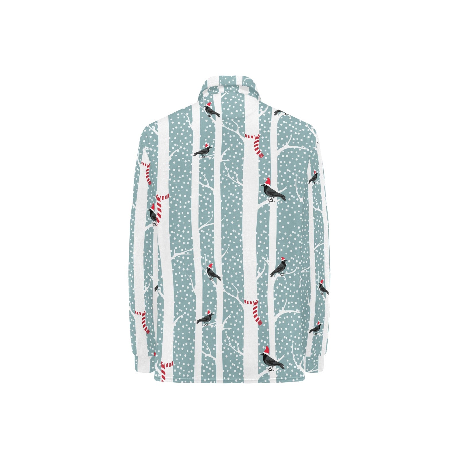 Crows christmas hat scarf Women's Long Sleeve Polo Shirt