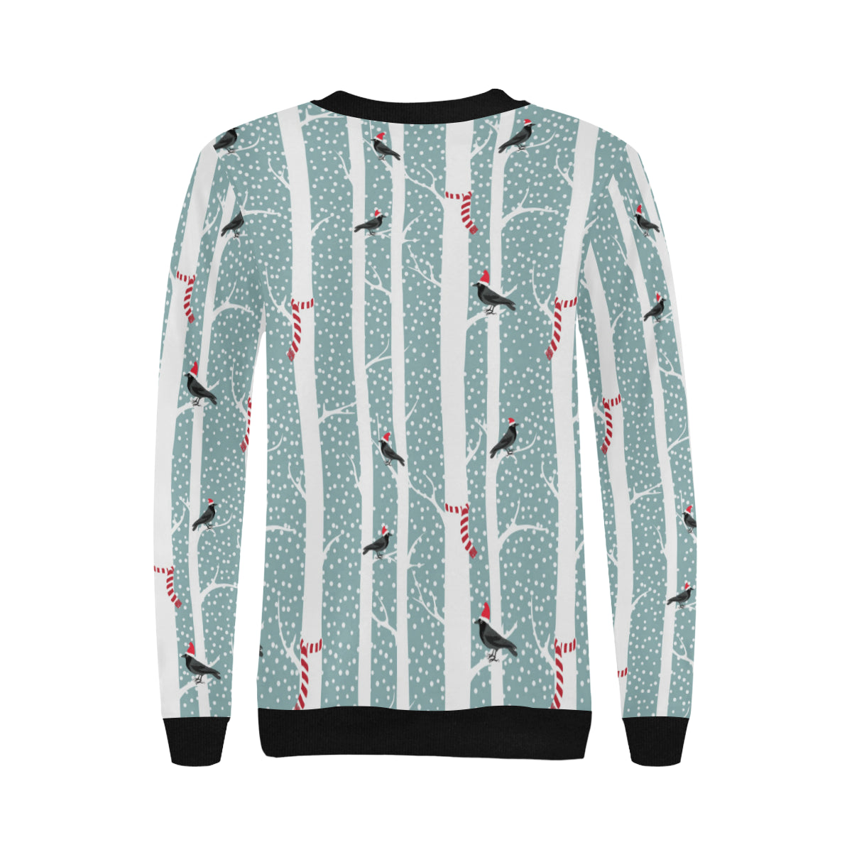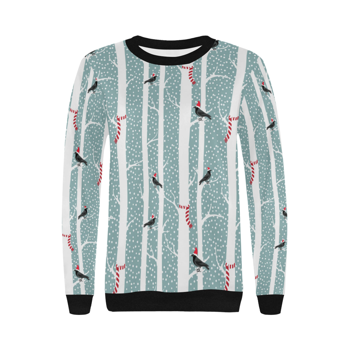 Crows christmas hat scarf Women's Crew Neck Sweatshirt