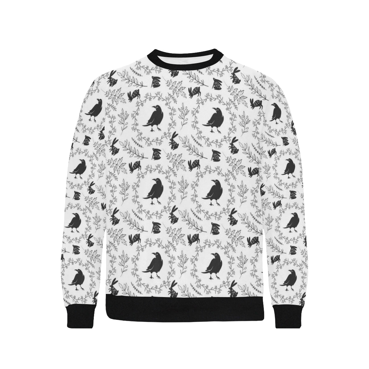 Crows floral wreath rabbit pattern Men's Crew Neck Sweatshirt