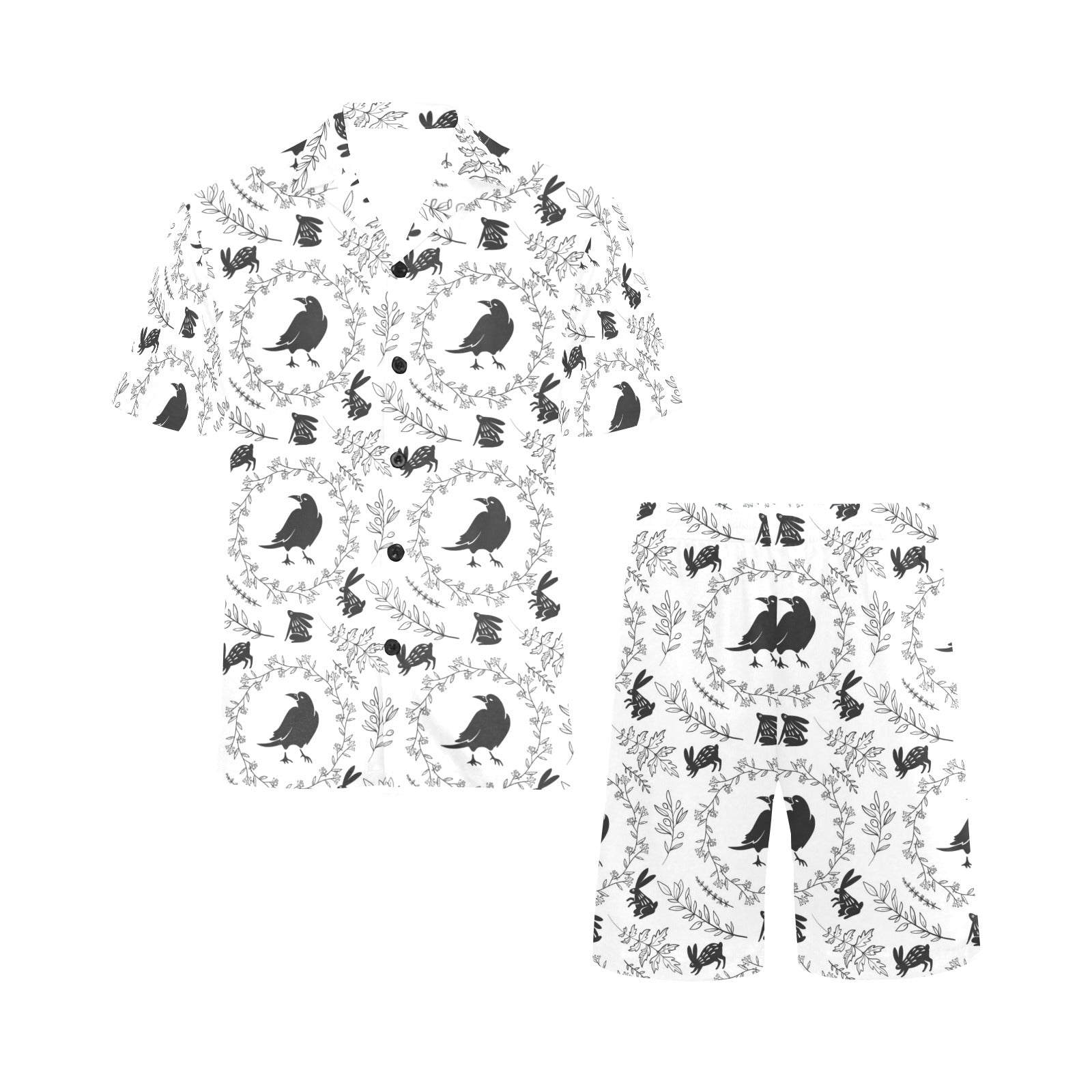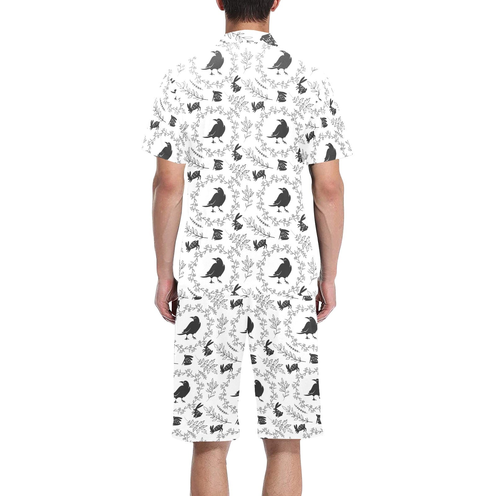 Crows floral wreath rabbit pattern Men's V-Neck Short Pajama Set