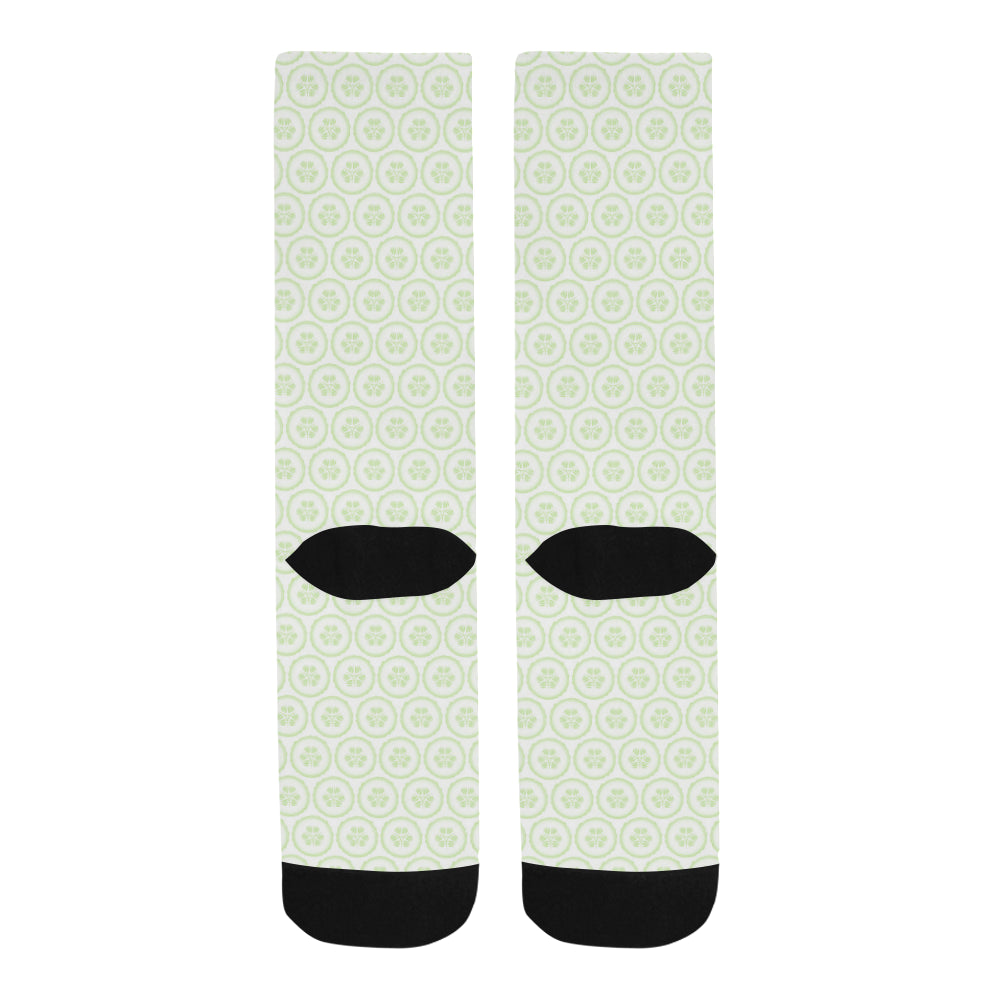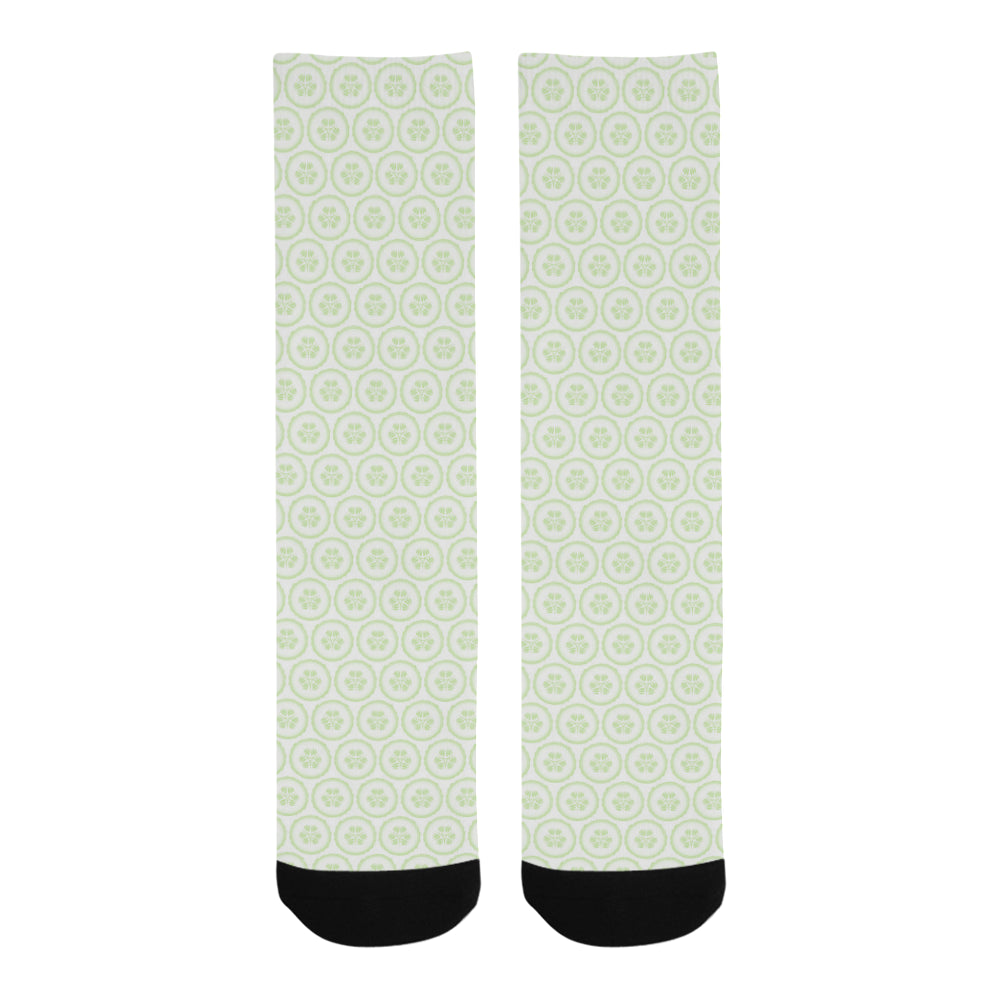Cucumber pattern background Crew Socks are uniqued design and limited item. It made to order, hand printed, and sewn with love in our factory.