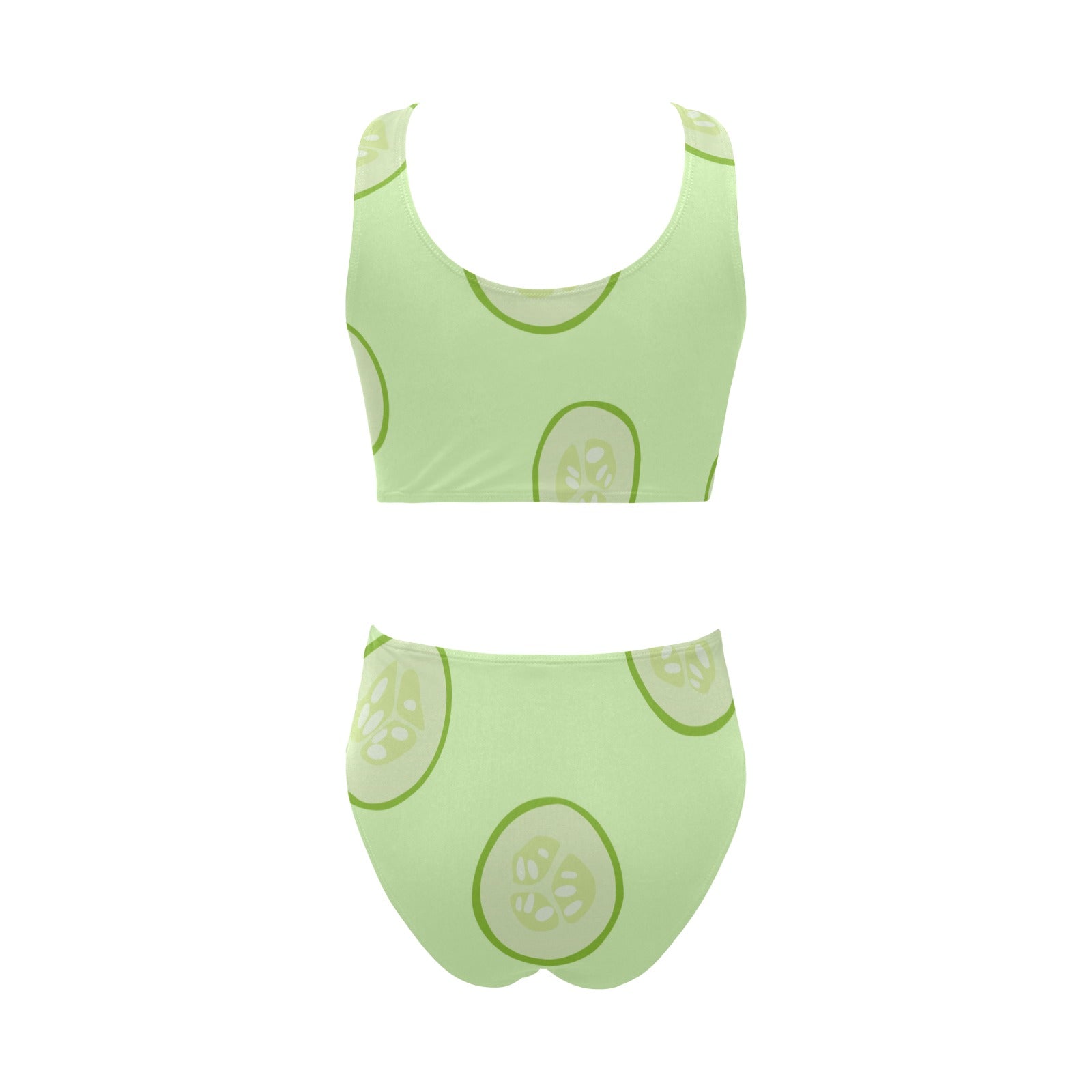 Cucumber pattern Chest Bowknot High Waisted Bikini Swimsuit