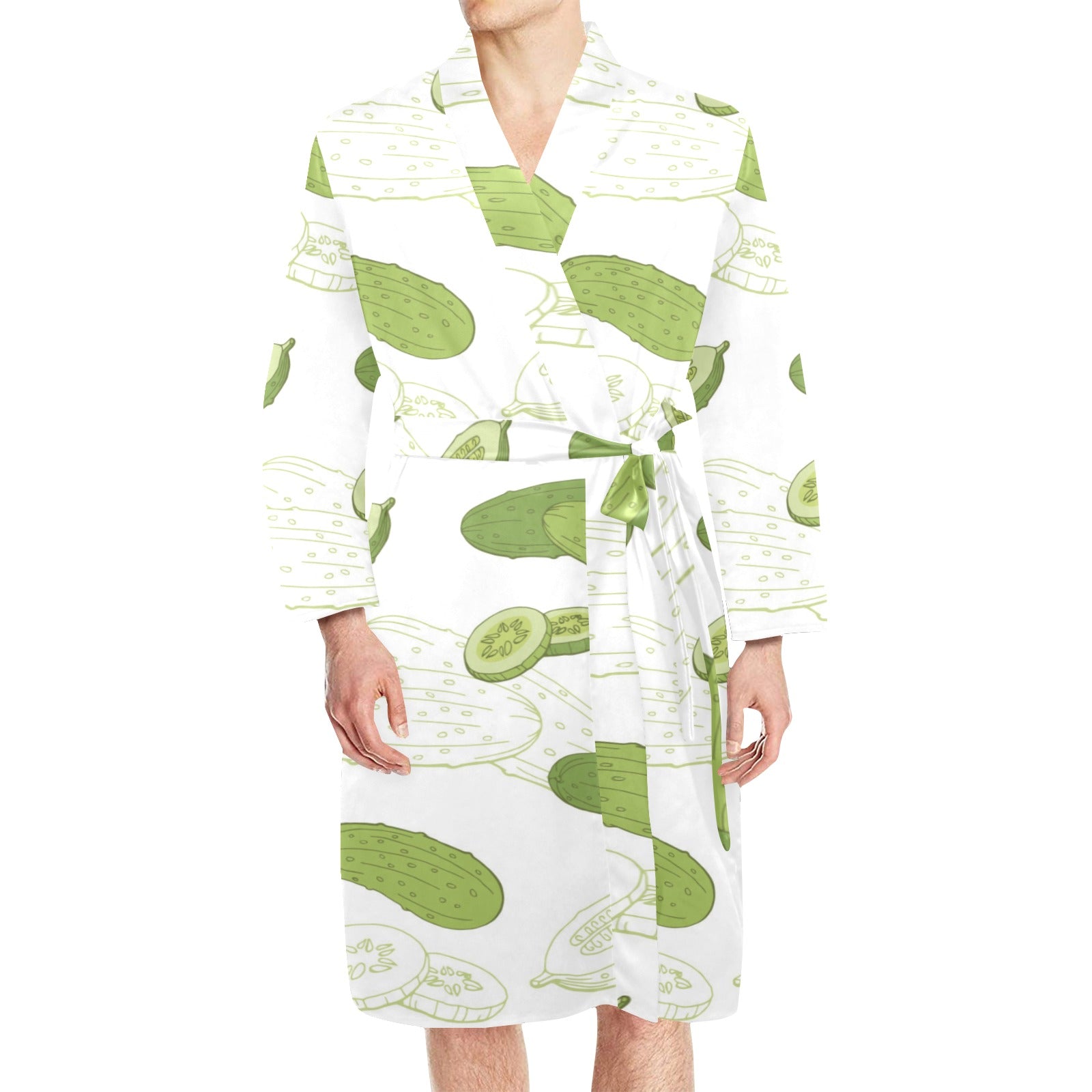 Cucumber sketch pattern Men's Long Sleeve Belted Night Robe