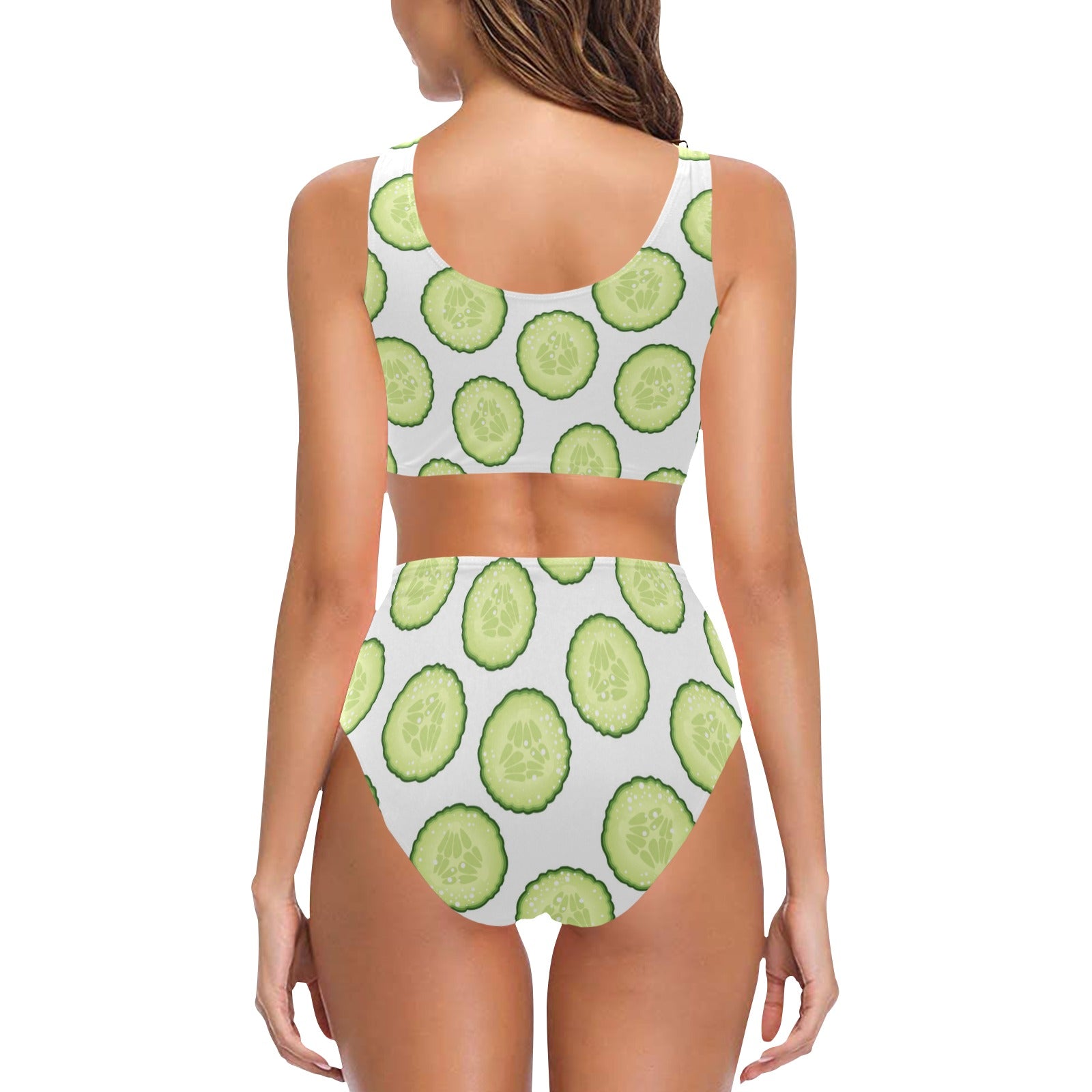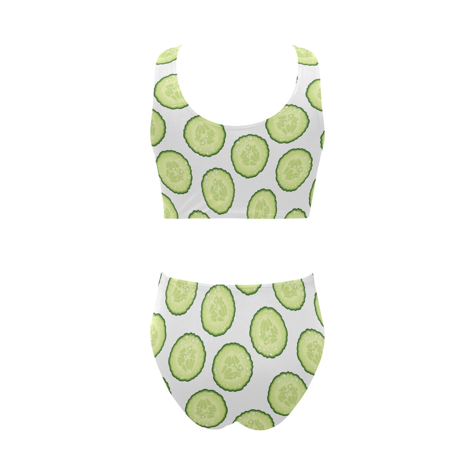 Cucumber slices pattern Chest Bowknot High Waisted Bikini Swimsuit