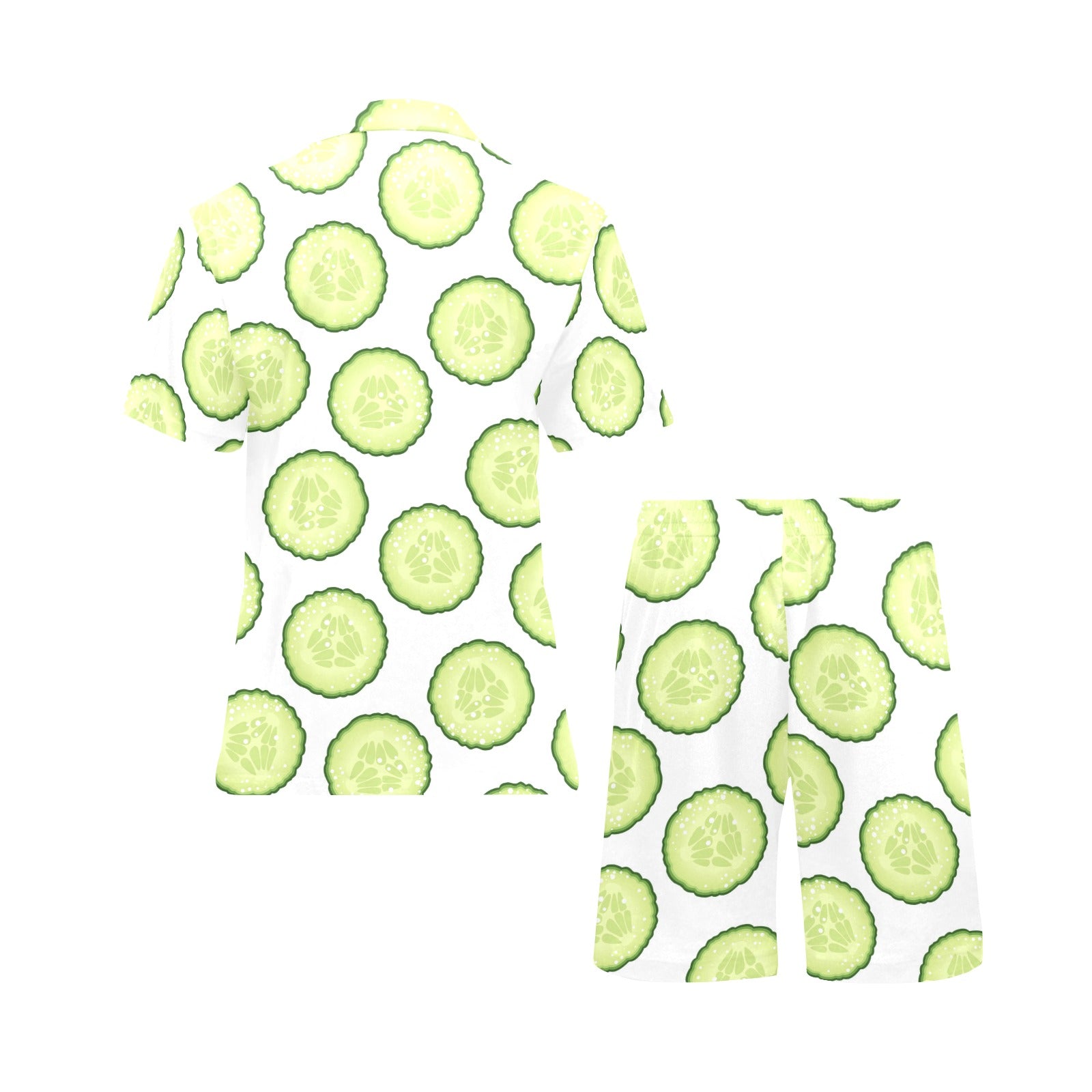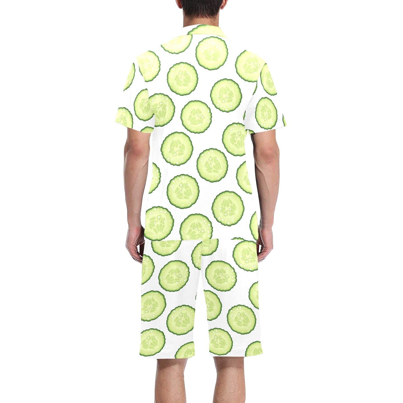 Cucumber slices pattern Men's V-Neck Short Pajama Set