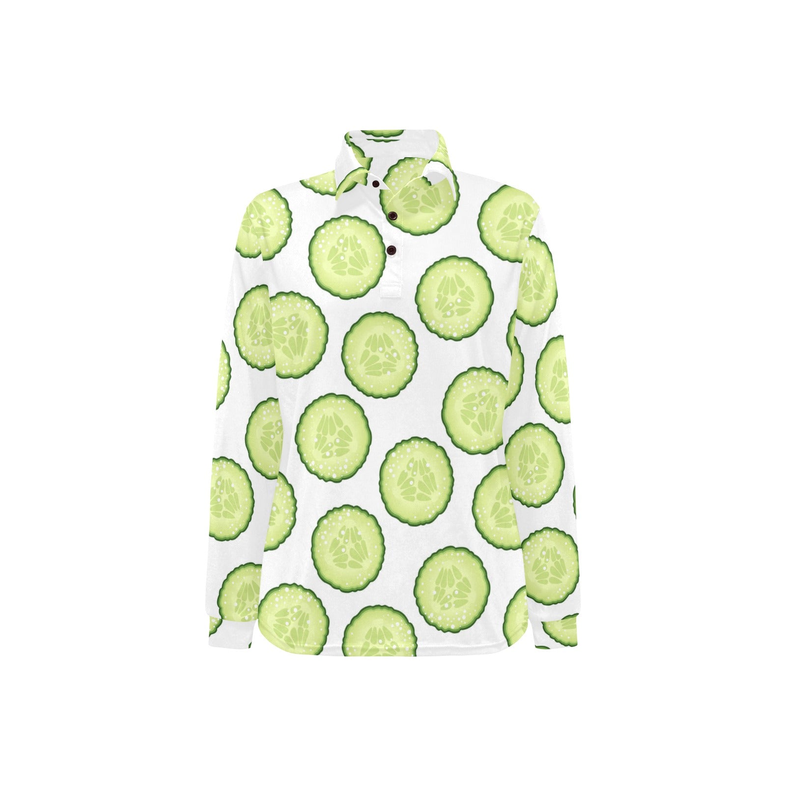 Cucumber slices pattern Women's Long Sleeve Polo Shirt