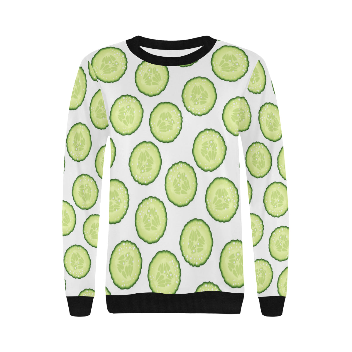 Cucumber slices pattern Women's Crew Neck Sweatshirt is a uniqued design and limited item. It made to order, hand printed, and sewn with love in our factory.