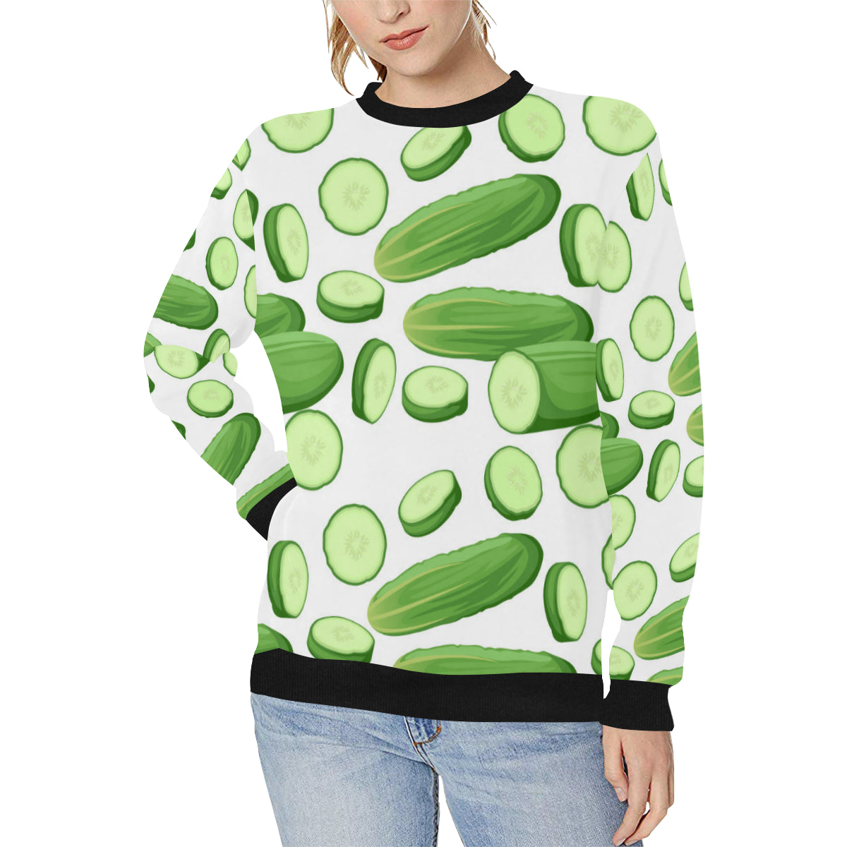 cucumber whole slices pattern Women's Crew Neck Sweatshirt