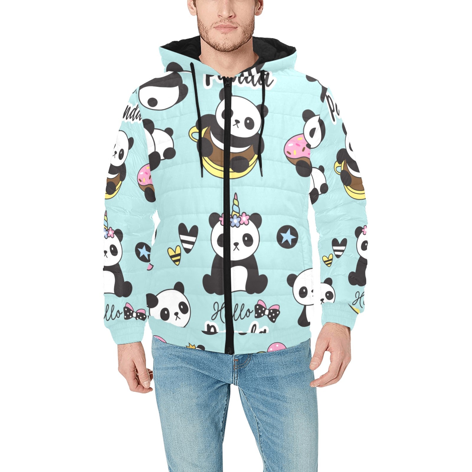 Cute baby panda pattern Men's Padded Hooded Jacket
