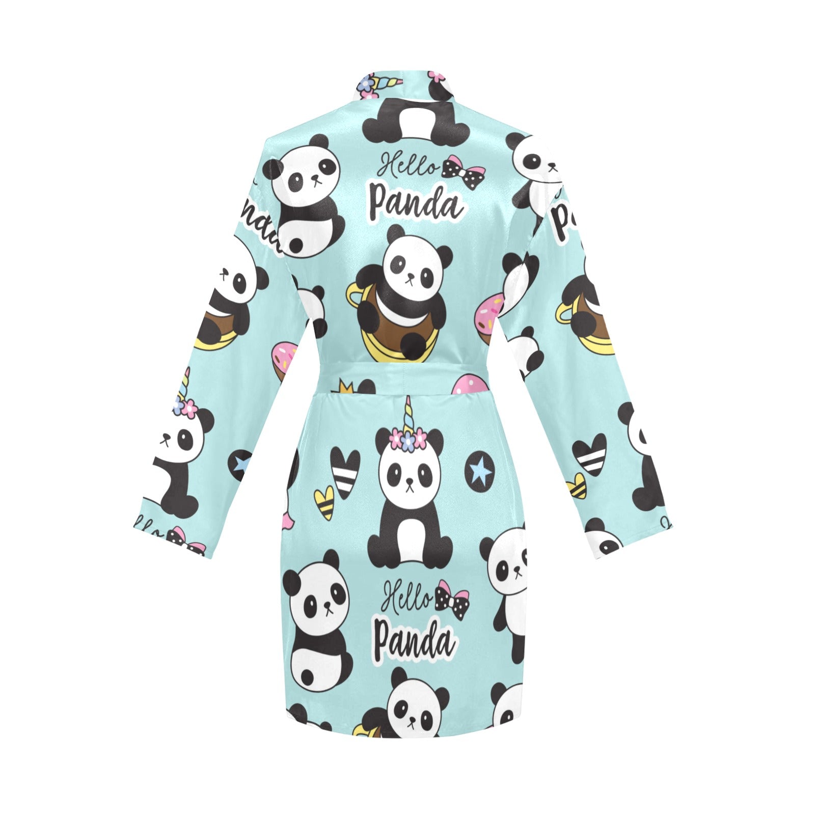 Cute baby panda pattern Women's Long Sleeve Belted Night Robe