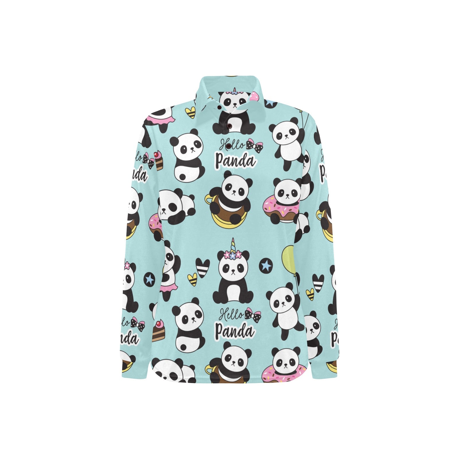 Cute baby panda pattern Women's Long Sleeve Polo Shirt
