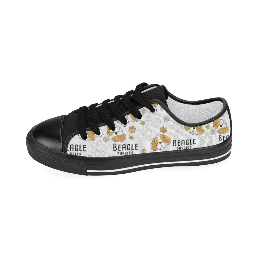 Cute beagle dog pattern background Kids' Boys' Girls' Low Top Canvas Shoes Black