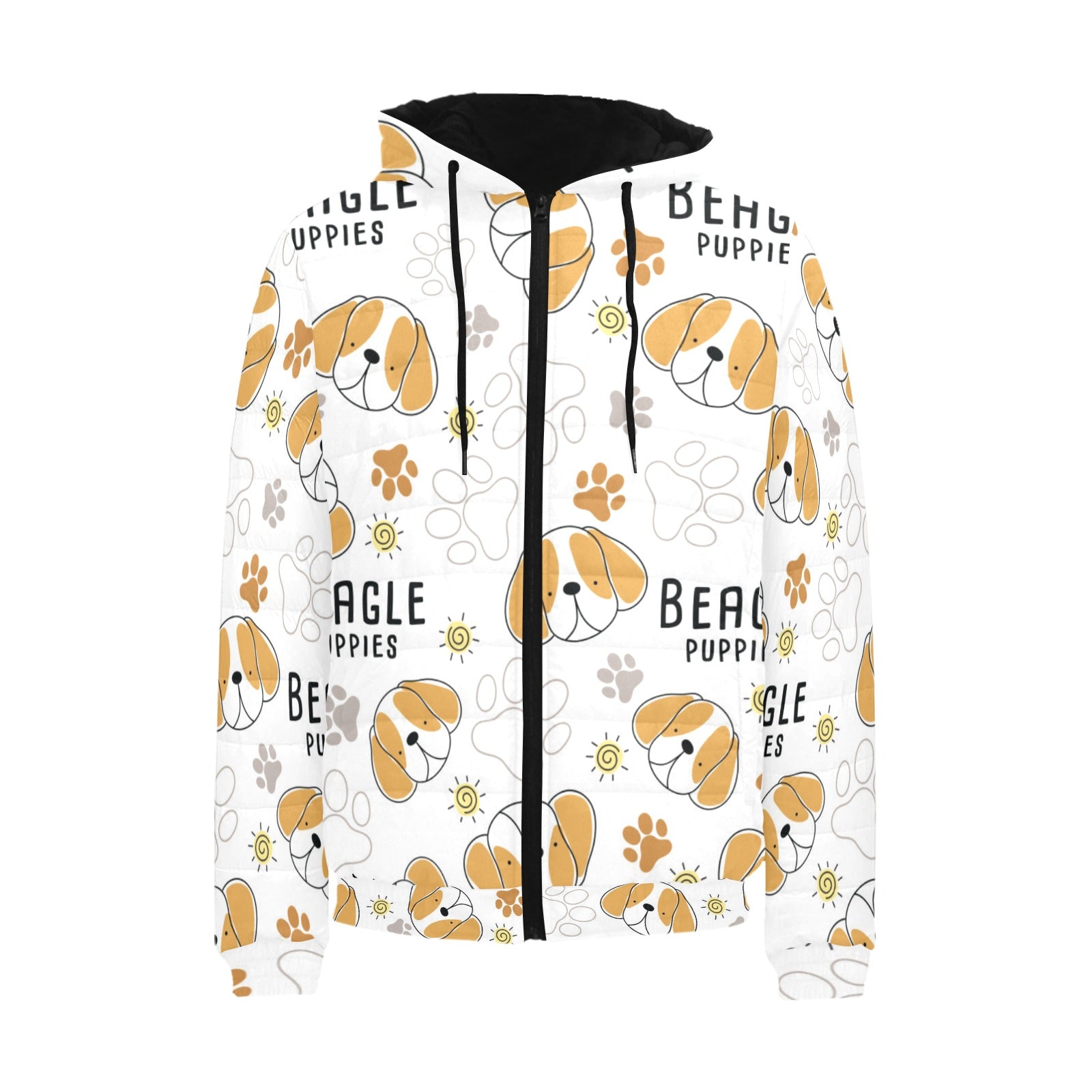 Cute beagle dog pattern background Men's Padded Hooded Jacket