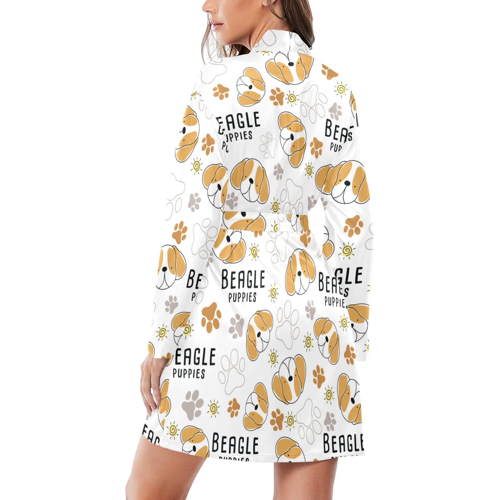 Cute beagle dog pattern background Women's Long Sleeve Belted Night Robe
