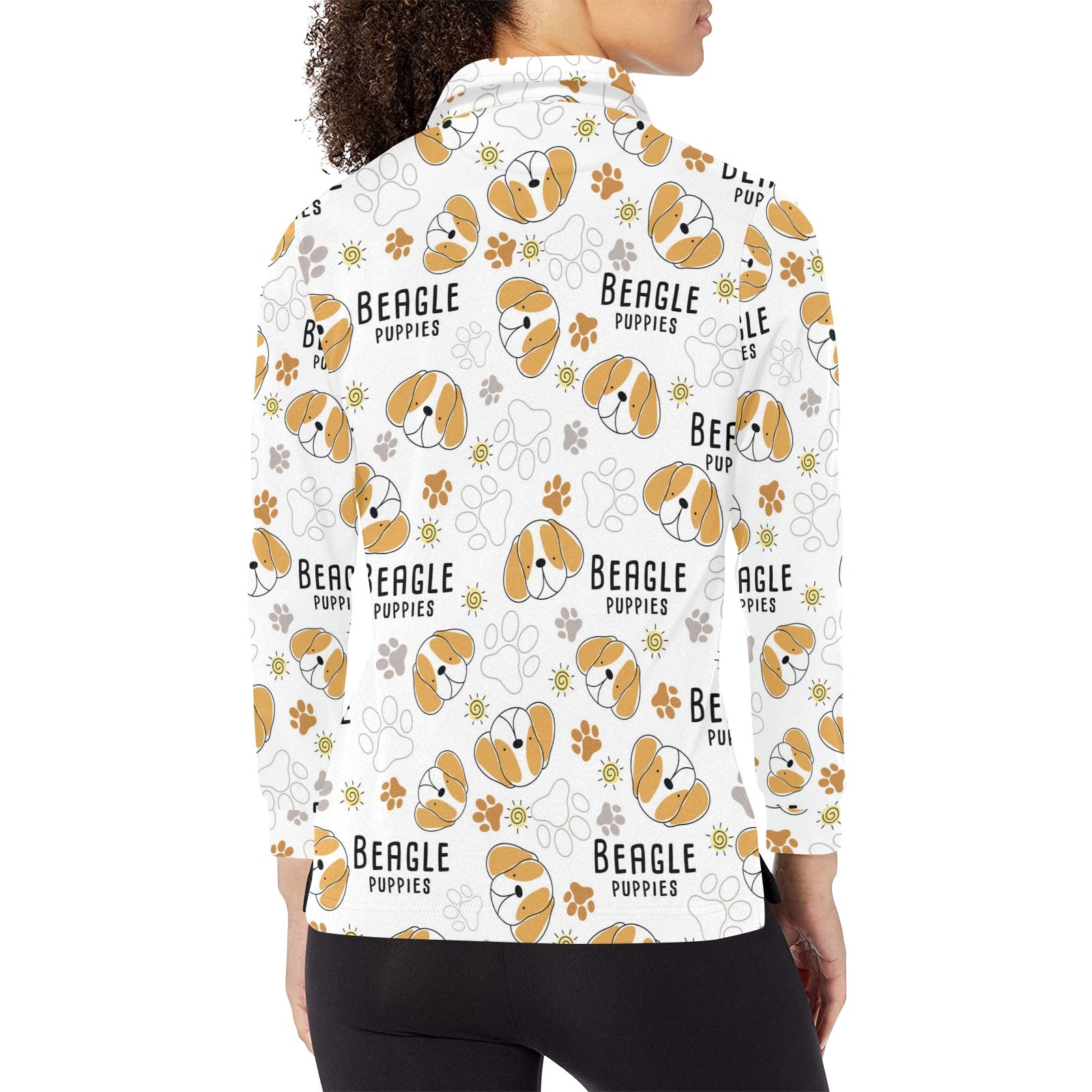Cute beagle dog pattern background Women's Long Sleeve Polo Shirt