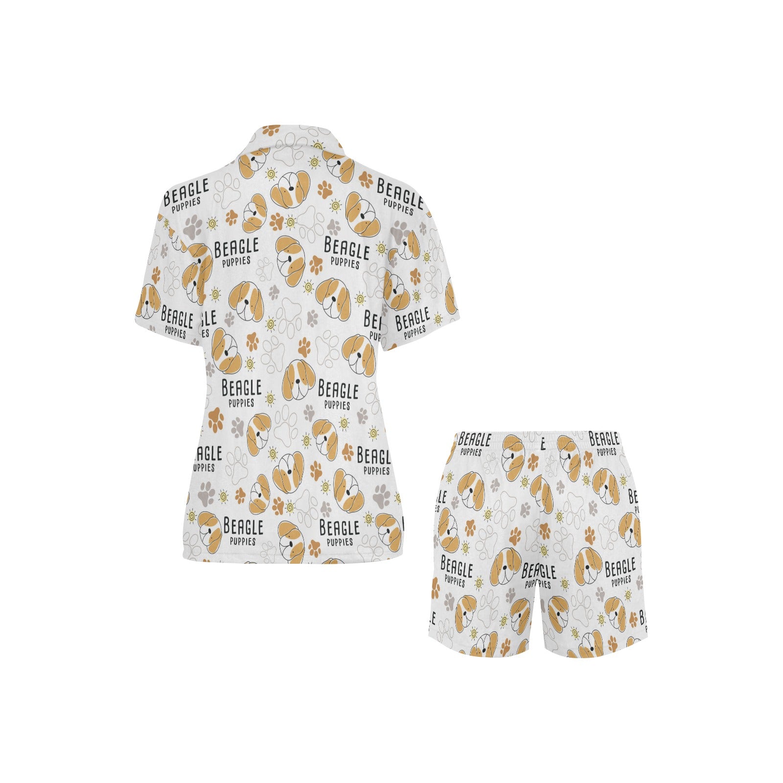 Cute beagle dog pattern background Women's V-Neck Short Pajama Set