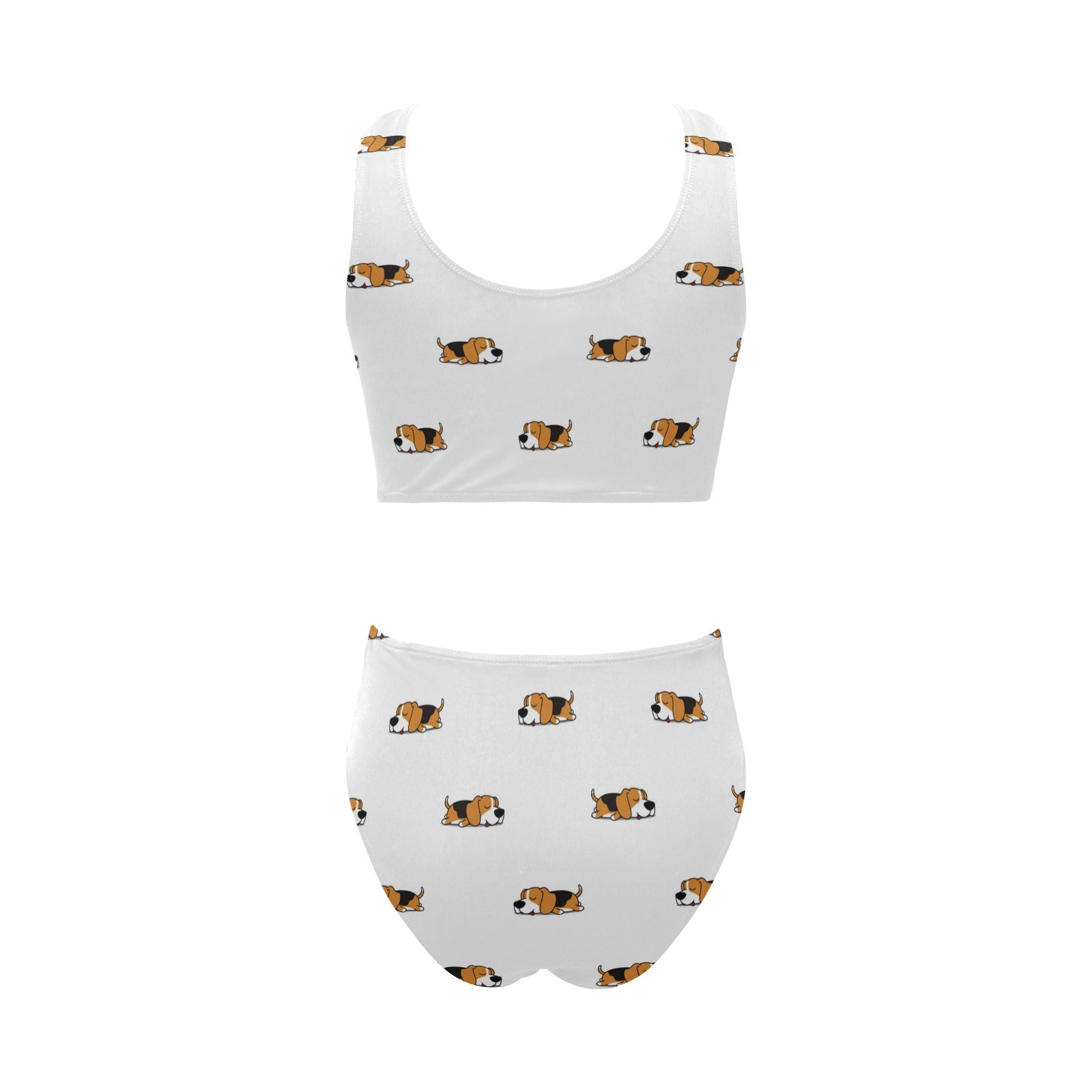 Cute beagle dog sleeping pattern Chest Bowknot High Waisted Bikini Swimsuit