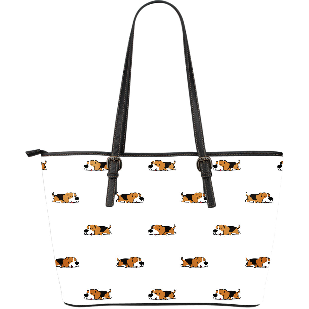 Cute beagle dog sleeping pattern Large Leather Tote Bag is a uniqued design and limited item. It made to order, hand printed, and sewn with love in our factory.