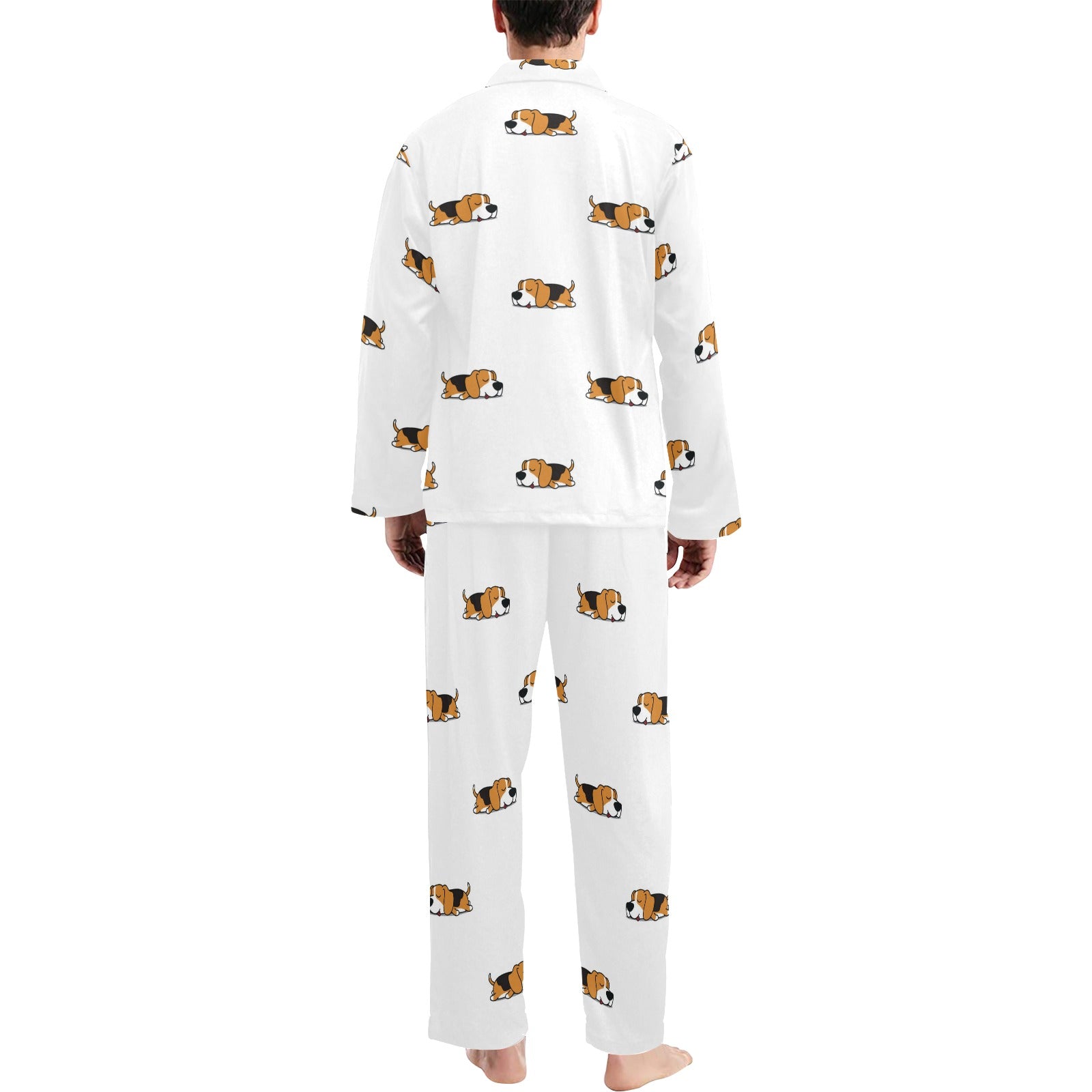 Cute beagle dog sleeping pattern Men's Long Pajama Set