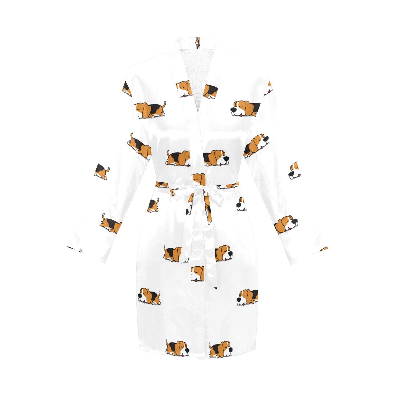 Cute beagle dog sleeping pattern Women's Long Sleeve Belted Night Robe