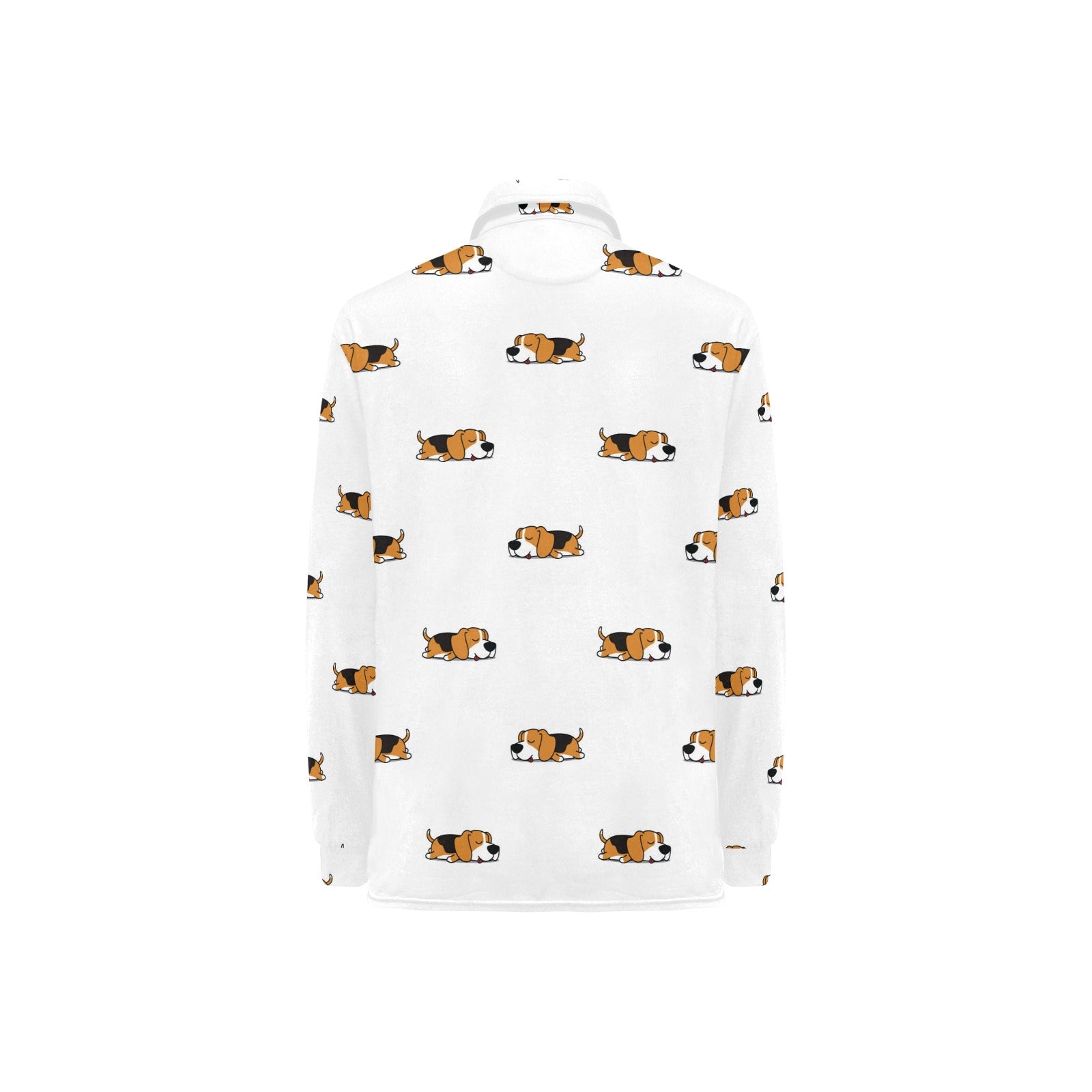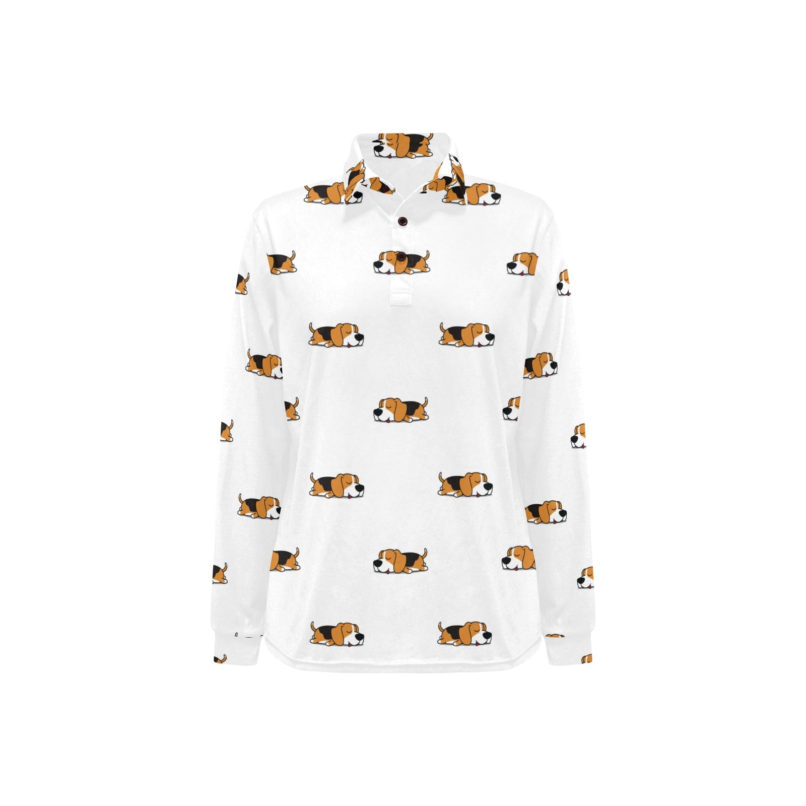 Cute beagle dog sleeping pattern Women's Long Sleeve Polo Shirt