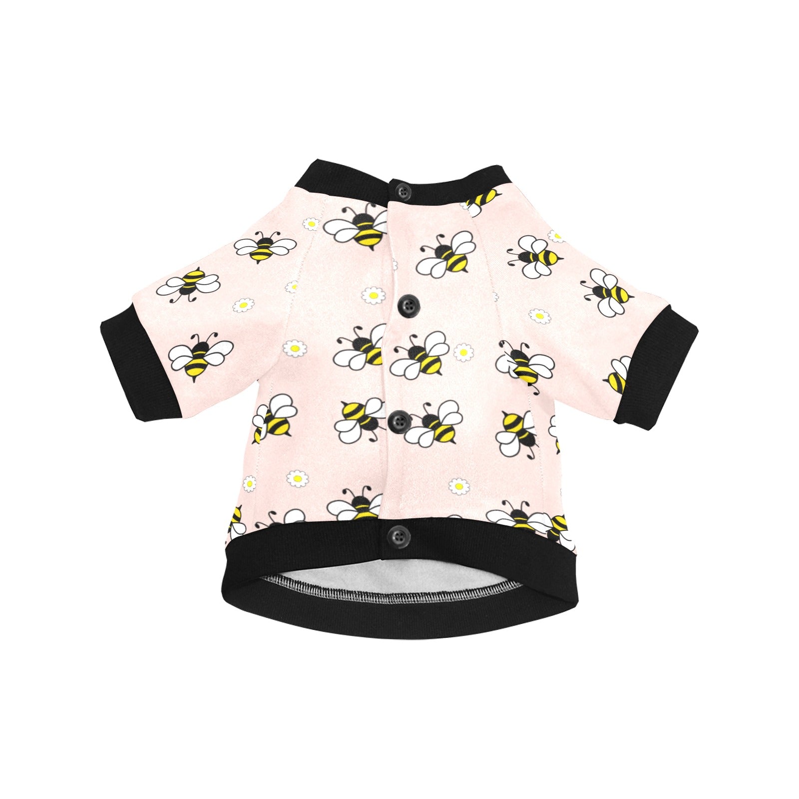 Cute bee flower pattern pink background All Over Print Pet Dog Round Neck Fuzzy Shirt
