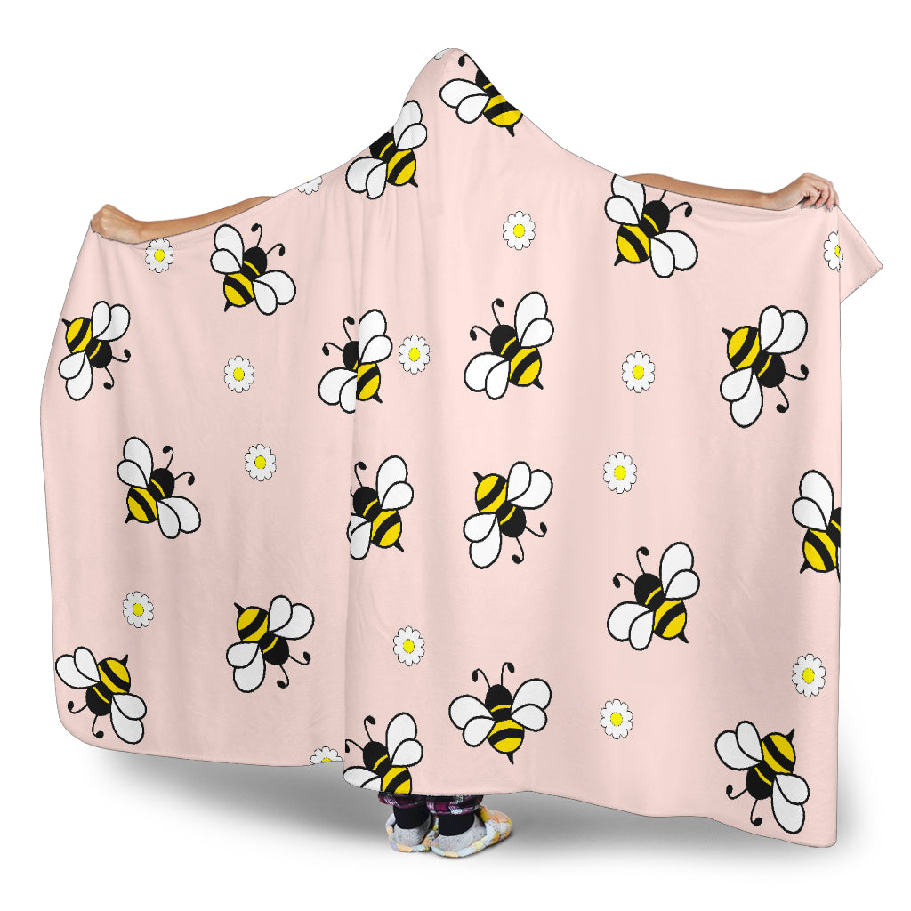 Cute bee flower pattern pink background Hooded Blanket are custom-made-to-order and handcrafted to the highest quality standards.