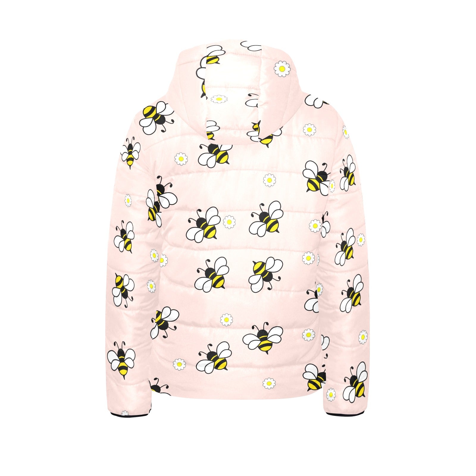 Cute bee flower pattern pink background Kids' Boys' Girls' Padded Hooded Jacket