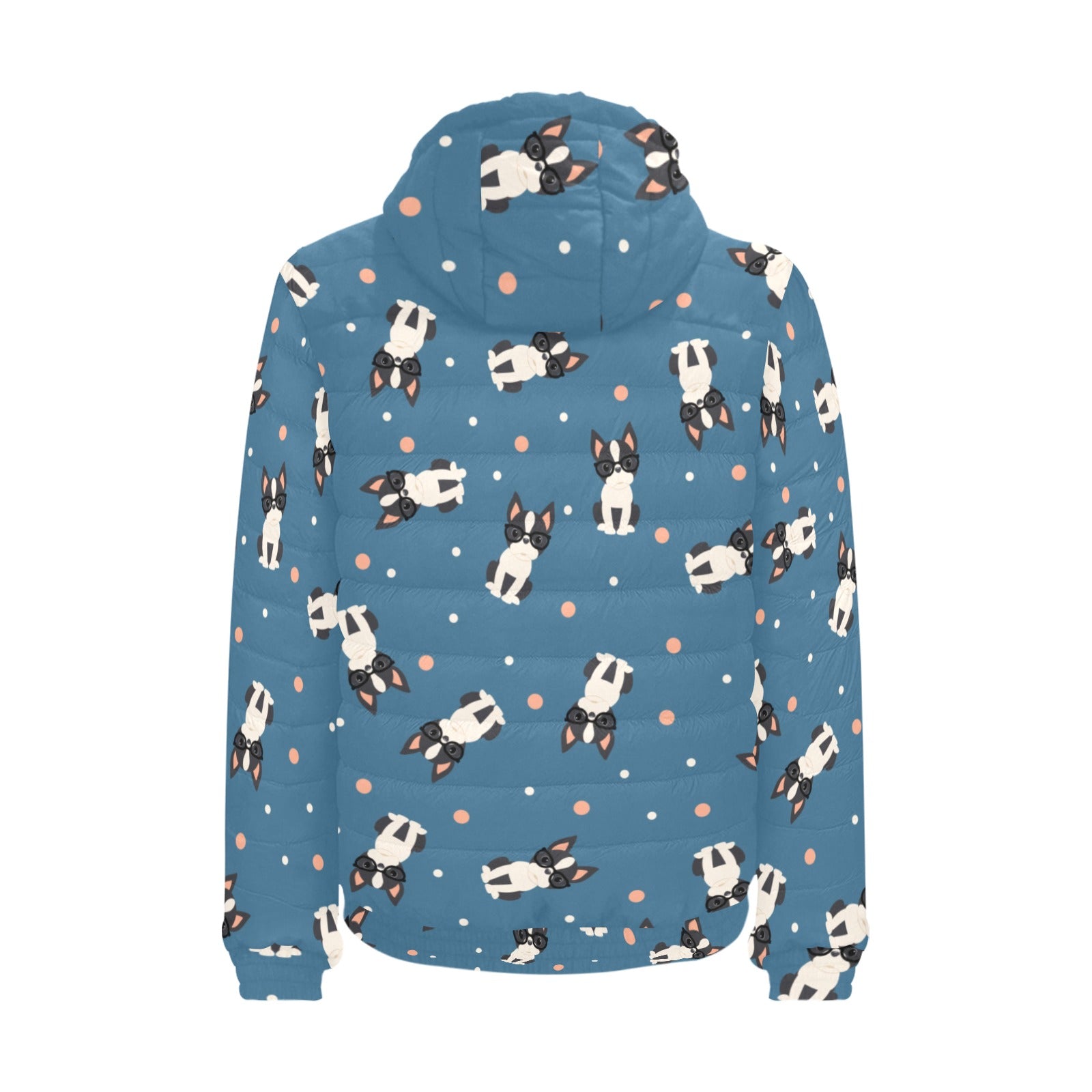 Cute boston terrier dog spattern Men's Padded Hooded Jacket