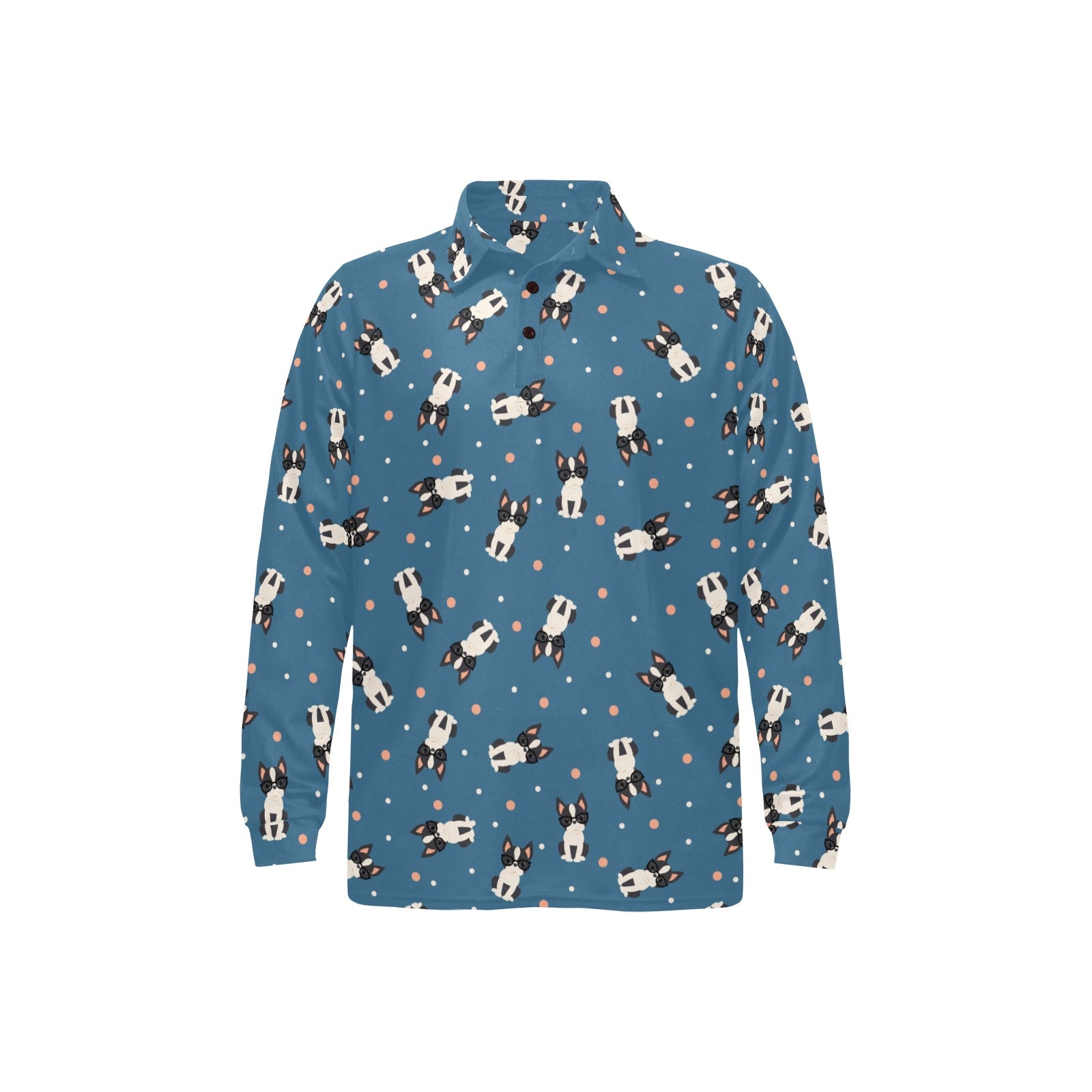 Cute boston terrier dog spattern Men's Long Sleeve Polo Shirt