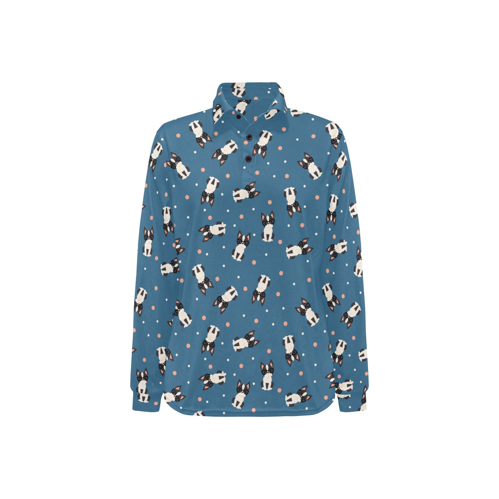 Cute boston terrier dog spattern Women's Long Sleeve Polo Shirt
