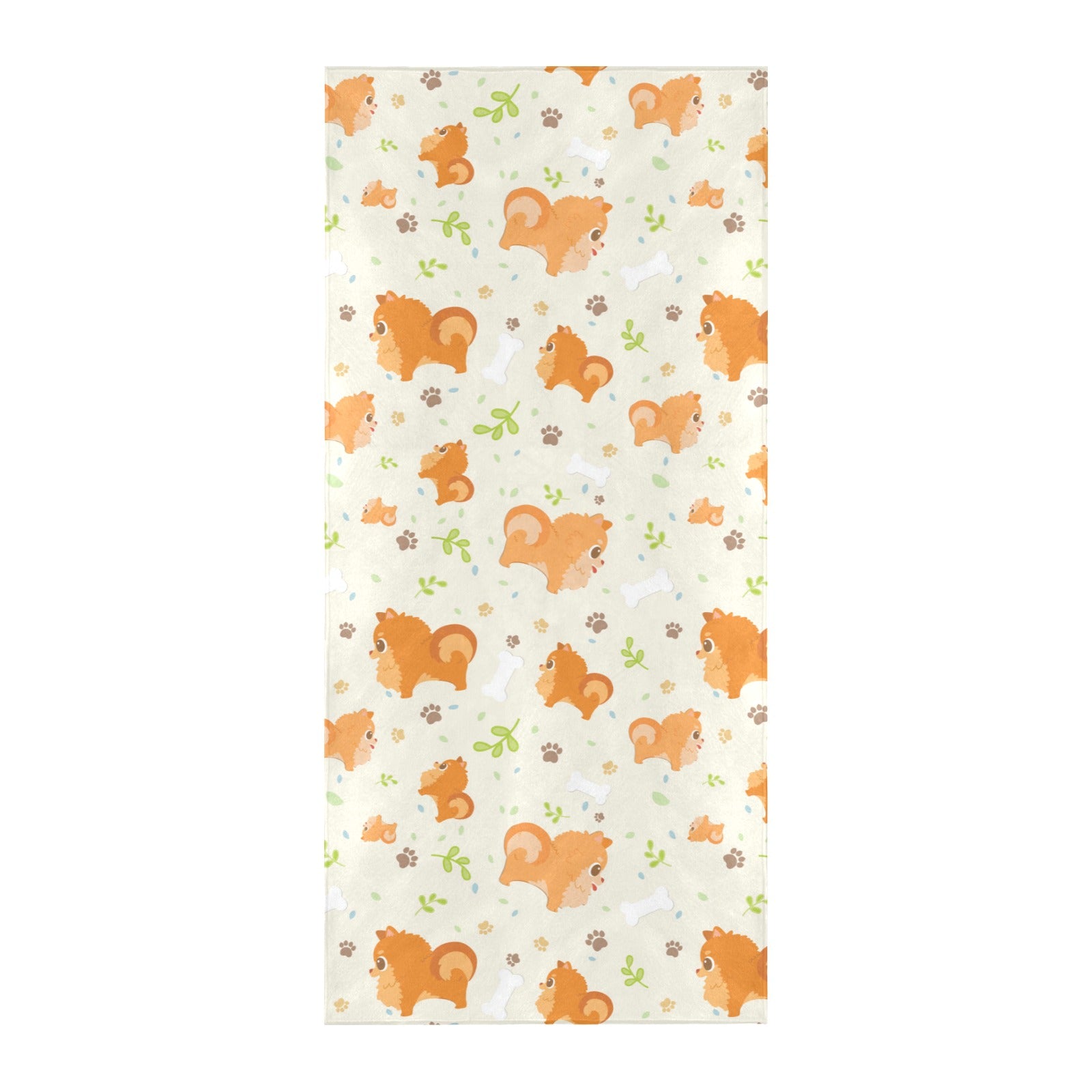 Cute brown pomeranian paw leave bone pattern Beach Towel